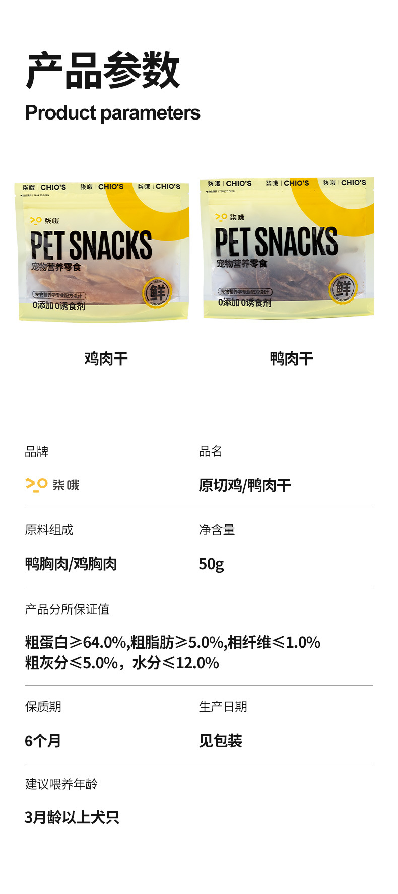 애완 동물 개 간식 닭 육포 오리 육포 건조 순수한 육포 가방 영양 첨가되지 않은 고단백 강아지 어금니