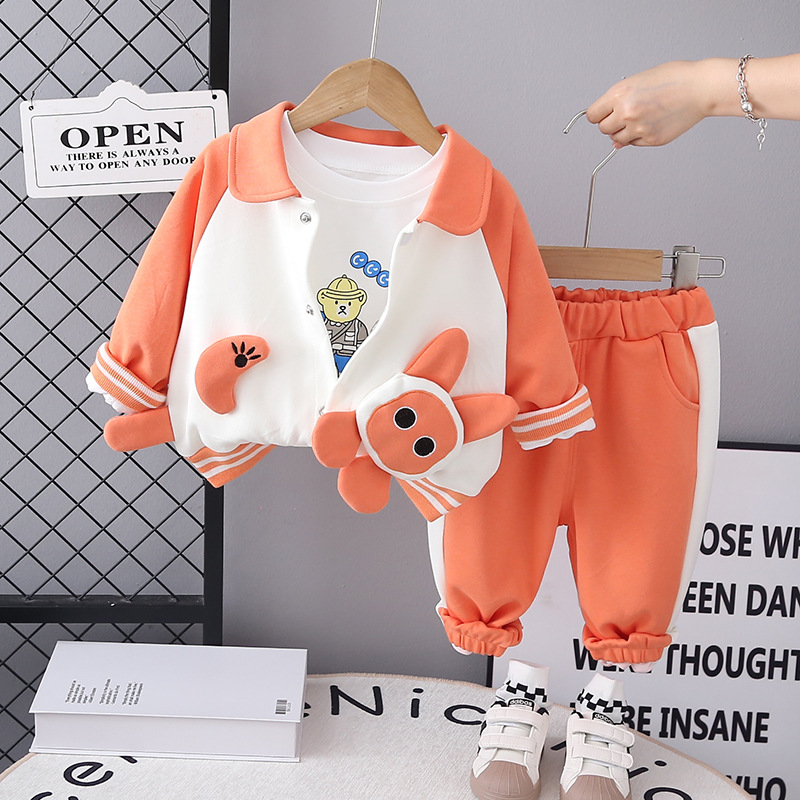 국경 간 아동복 2025 년 봄과 가을 새로운 서양식 남녀 어린이 세트 봄 만화 야구 세트 3 종 도매스토어 가기