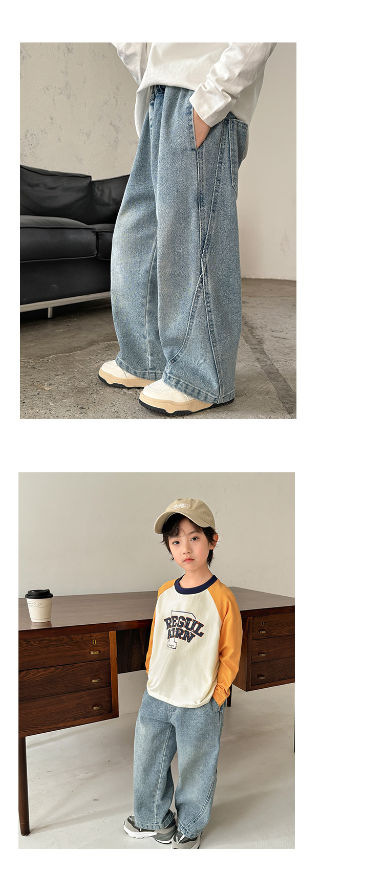 해마가족 2025 가을 신상 남아용 세련된 워싱 루즈핏 데님 팬츠 가을옷 와이드 팬츠 한국 스타일 아동복 트렌드스토어 가기