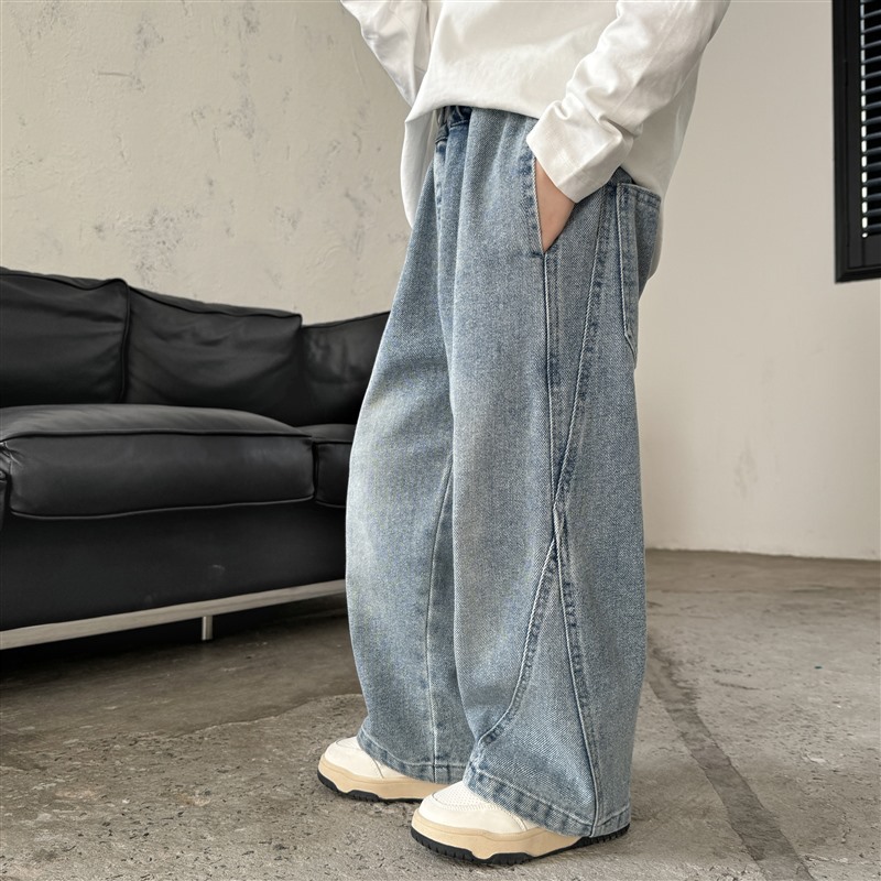 해마가족 2025 가을 신상 남아용 세련된 워싱 루즈핏 데님 팬츠 가을옷 와이드 팬츠 한국 스타일 아동복 트렌드