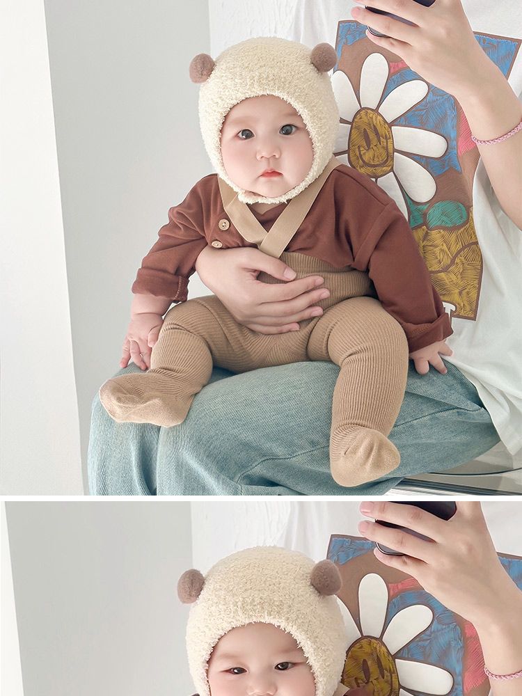 아기 모자 봄과 가을 새로운 작은 달 나이 귀여운 슈퍼 귀여운 태아 모자 소년 소녀 아기 귀 보호 봉제 풀오버 모자스토어 가기
