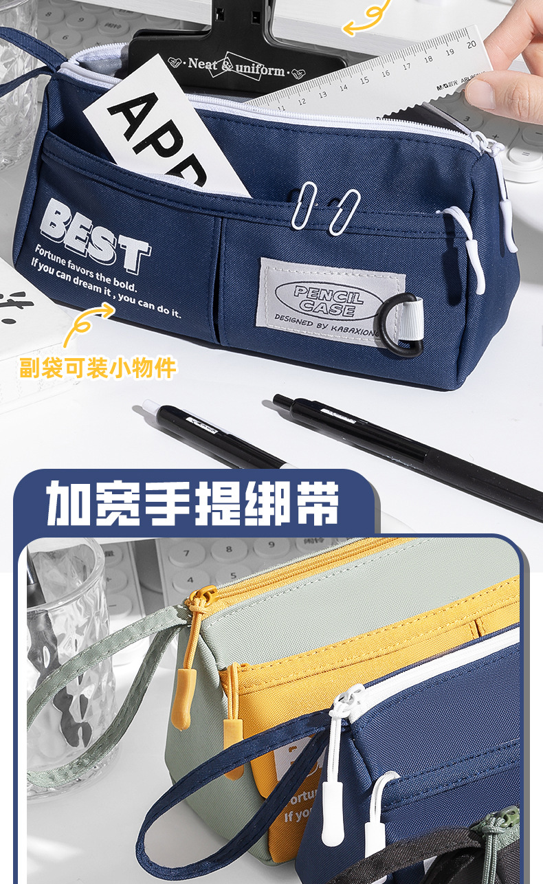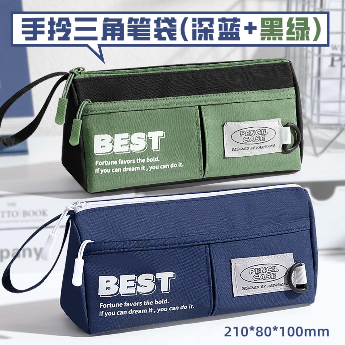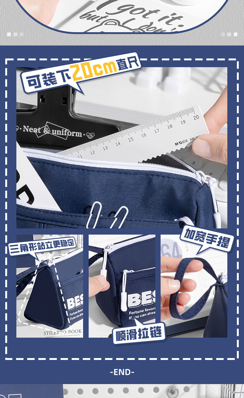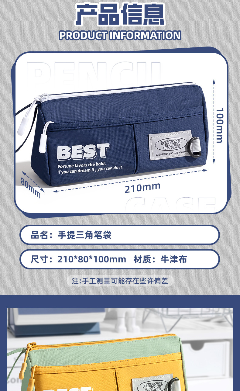 대용량 휴대용 삼각형 연필 가방 중학생을위한 간단한 캔버스 문구 가방 Ins 초등학교 학생 연필 케이스 더러운스토어 가기