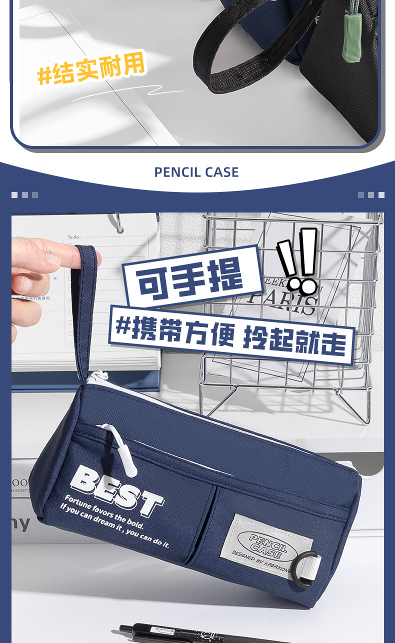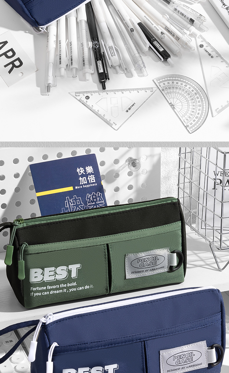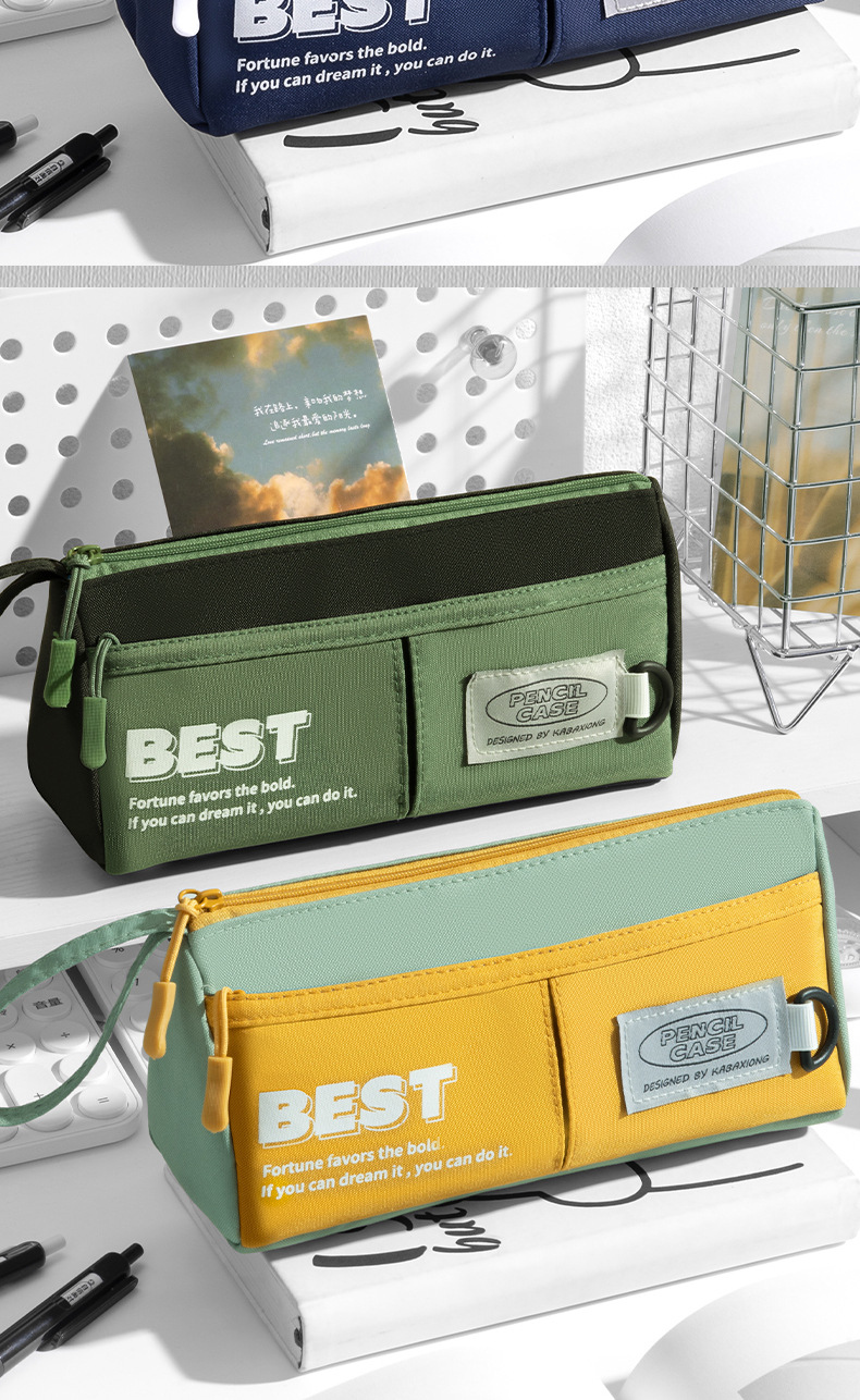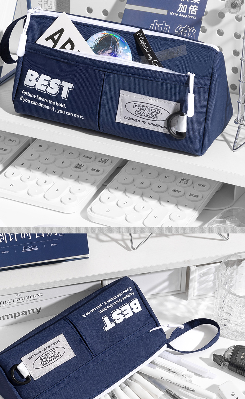 대용량 휴대용 삼각형 연필 가방 중학생을위한 간단한 캔버스 문구 가방 Ins 초등학교 학생 연필 케이스 더러운스토어 가기