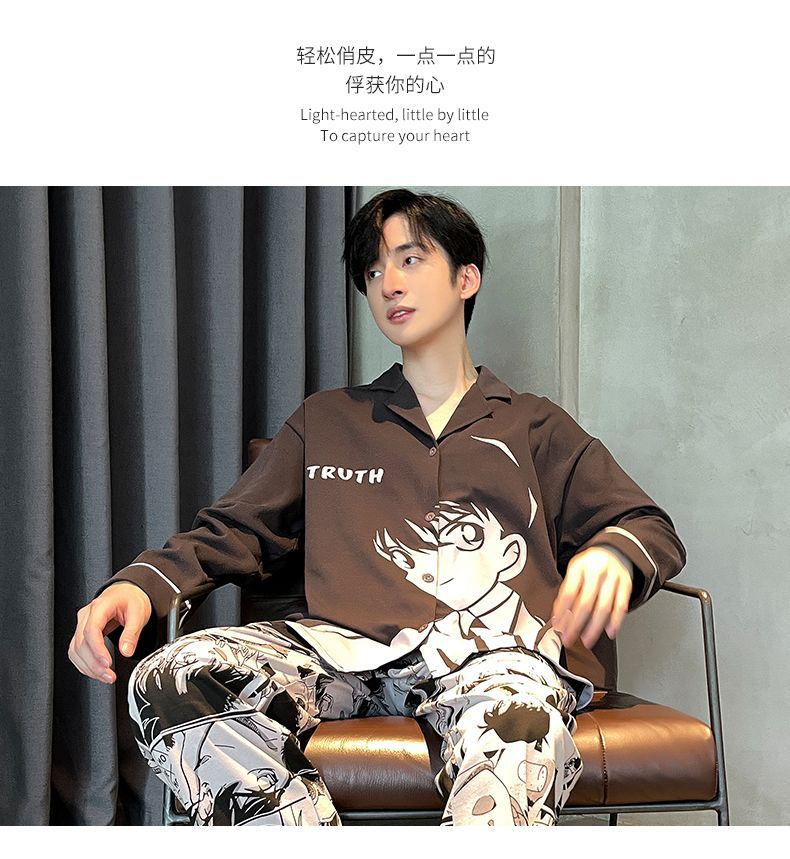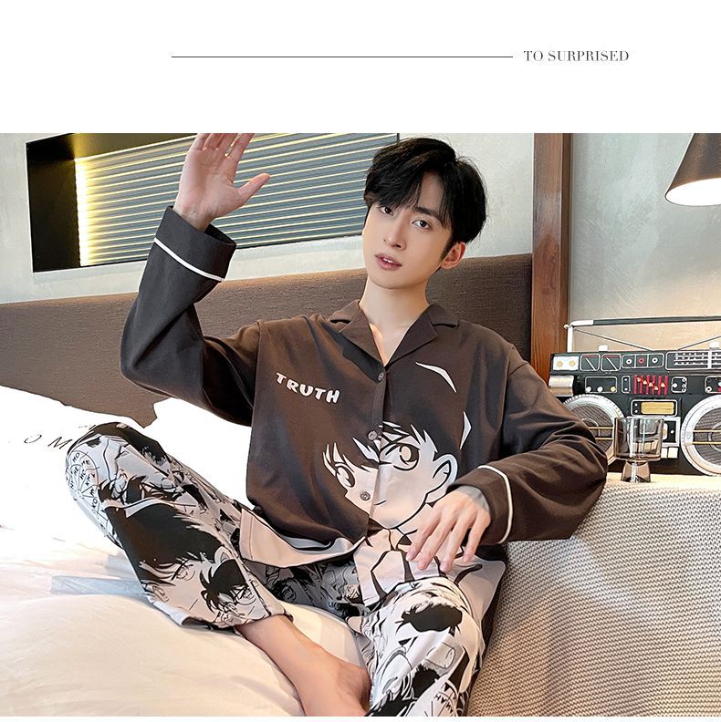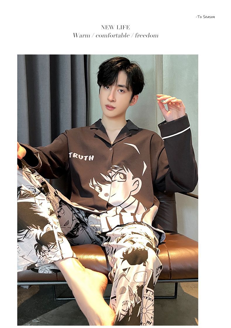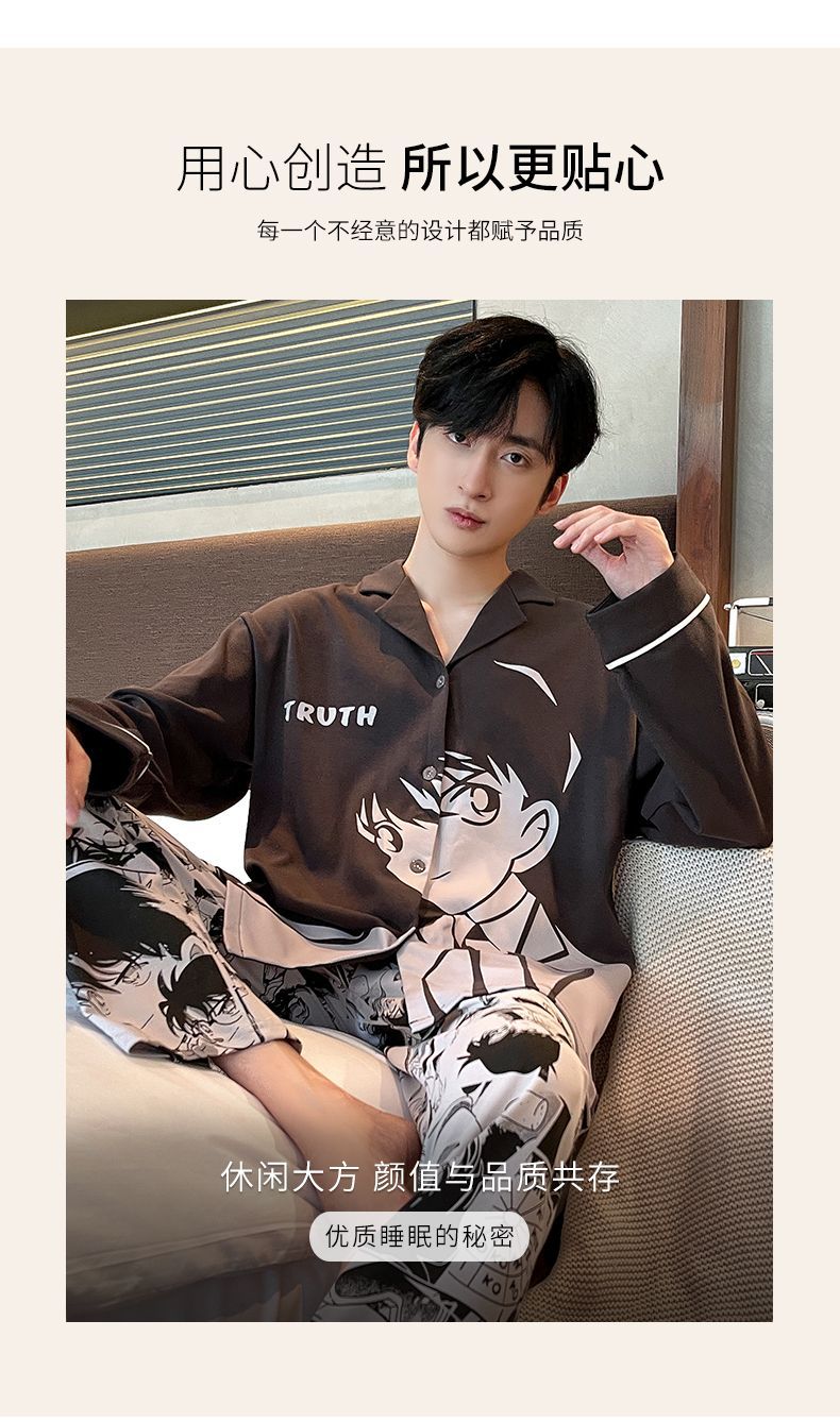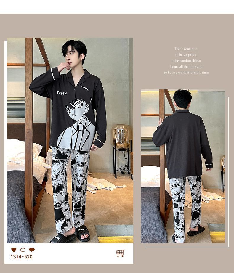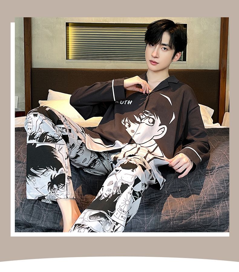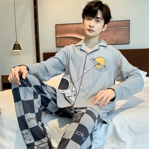 봄과 가을 새 잠옷 남성면 긴 소매 잘 생긴 십대 만화 외부 착용 투피스 홈 의류 세트스토어 가기