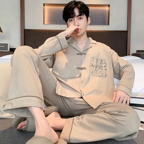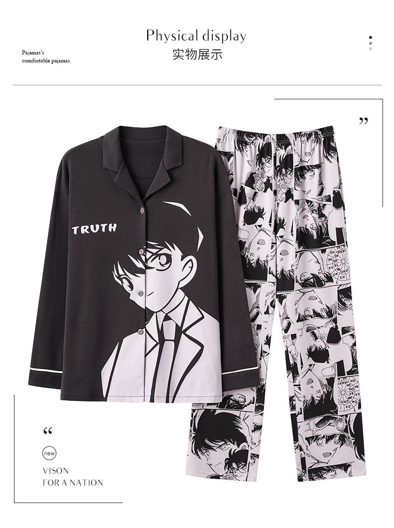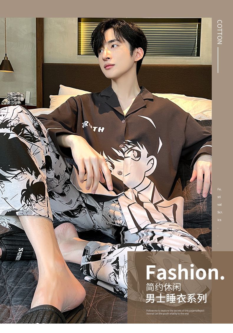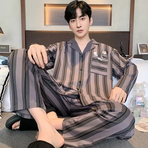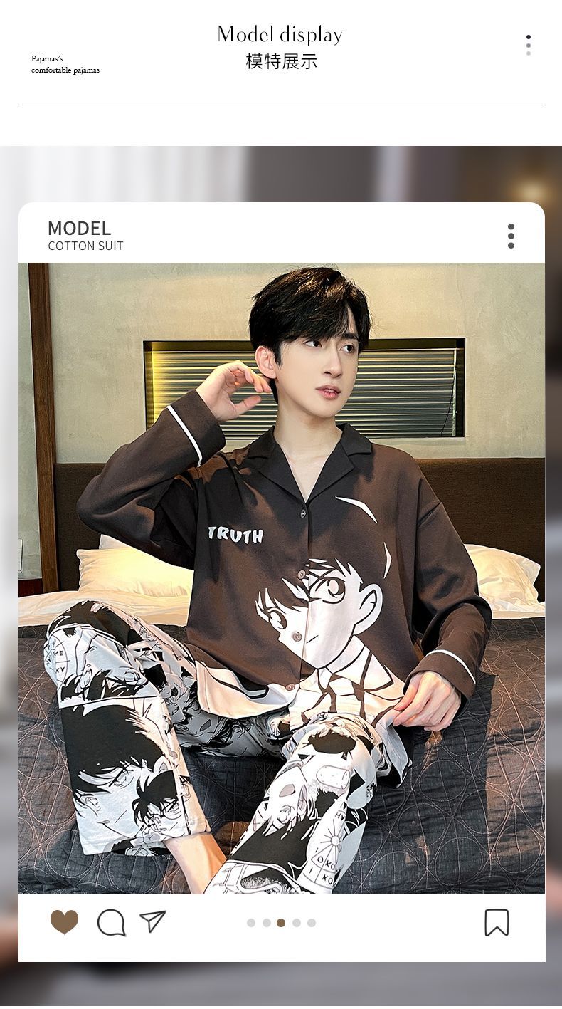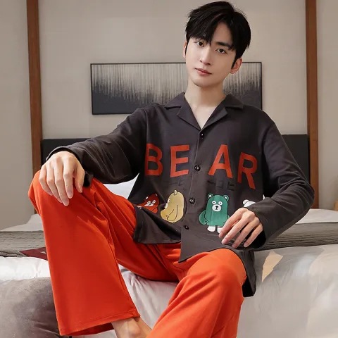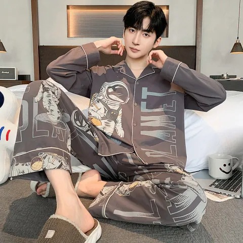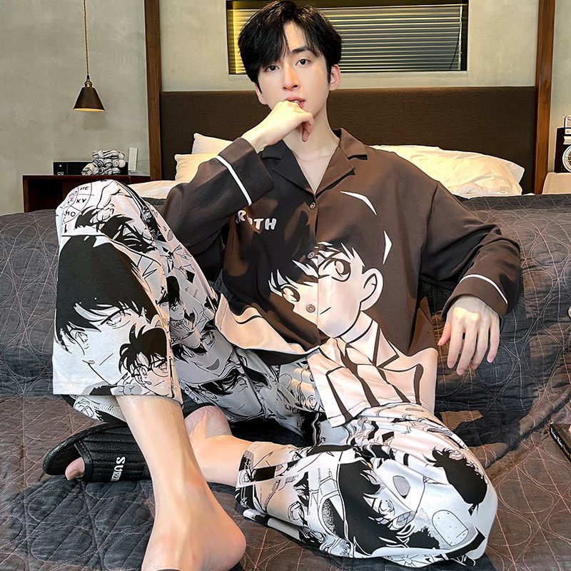 봄과 가을 새 잠옷 남성면 긴 소매 잘 생긴 십대 만화 외부 착용 투피스 홈 의류 세트스토어 가기