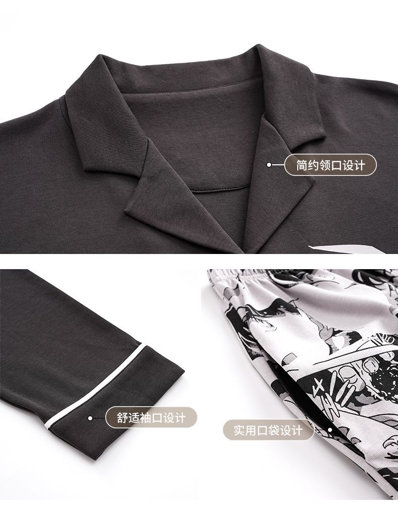 봄과 가을 새 잠옷 남성면 긴 소매 잘 생긴 십대 만화 외부 착용 투피스 홈 의류 세트