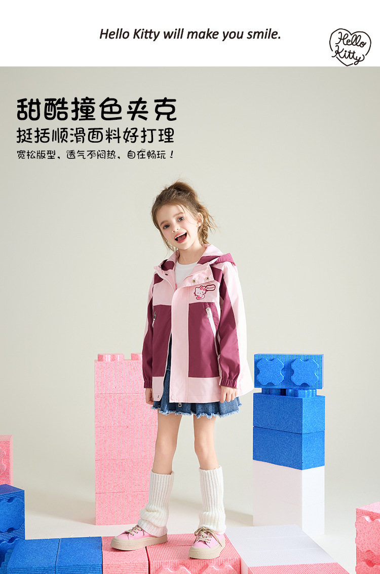 헬로 키티 소녀 봄과 가을 새로운 명암 컬러 스포츠 재킷 2025 헬로 키티 만화 재킷스토어 가기