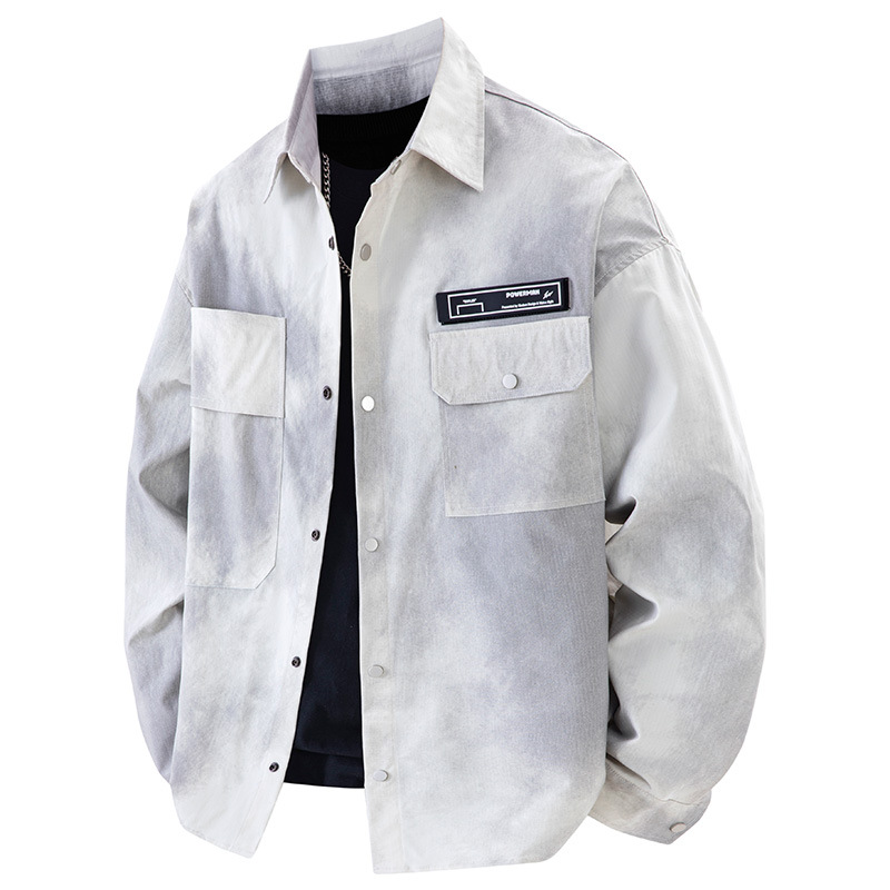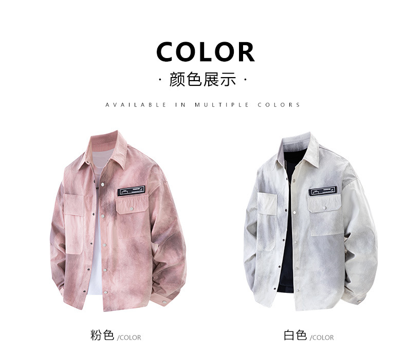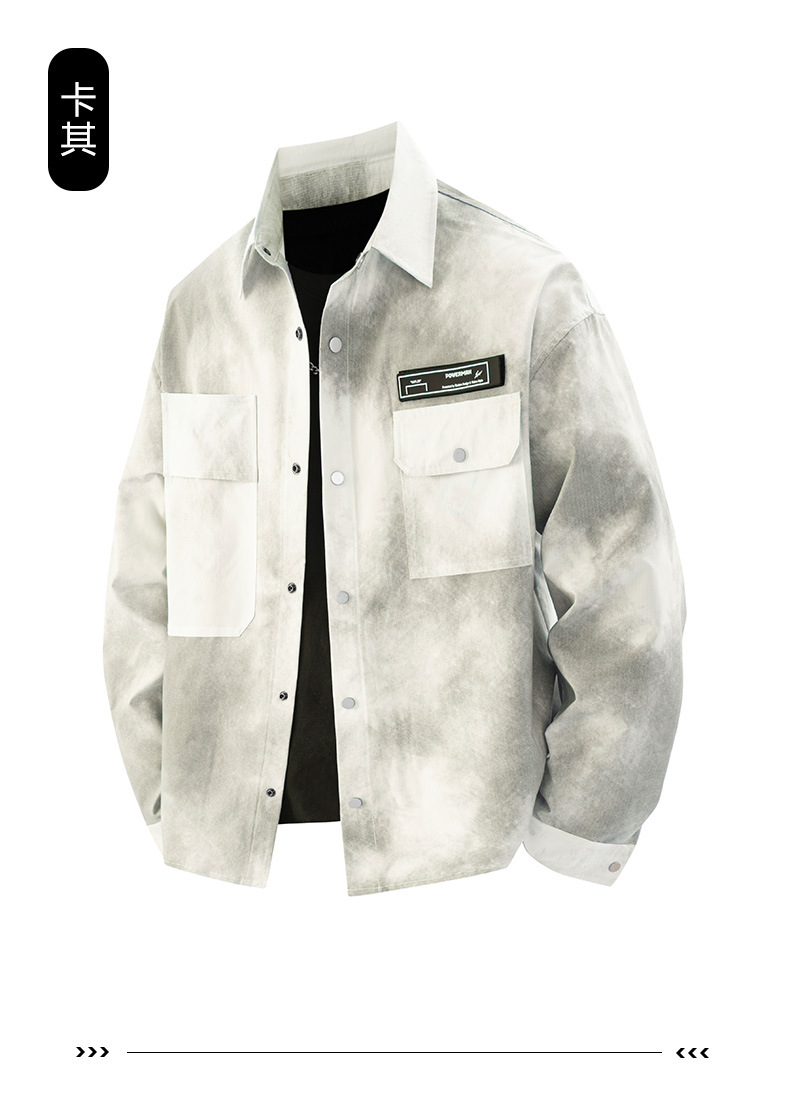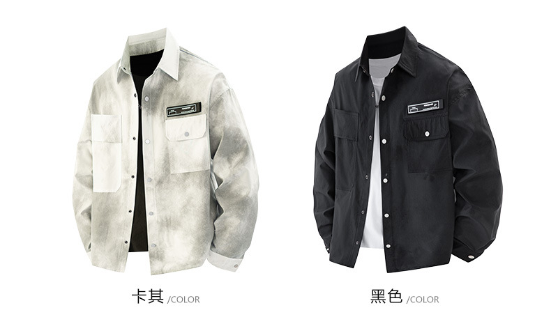 그라디언트 플러스 사이즈 작업복 셔츠 재킷 남자 봄 가을 패션 올 매치 캐주얼 플러스 사이즈 팻 플러스 사이즈 팻 루즈 셔츠스토어 가기