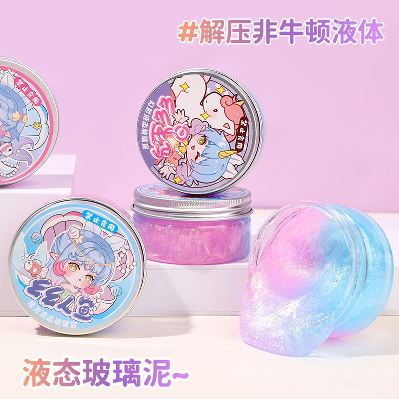 감압 비 뉴턴 액체 유리 진흙 어린이 감압 슬라임 컬러 진흙 그라디언트 컬러 장난감 진흙 크리스탈 진흙스토어 가기