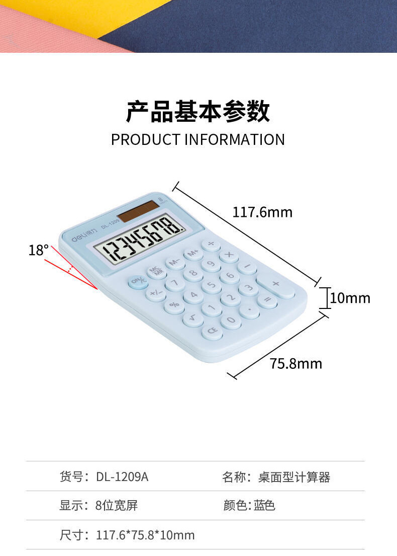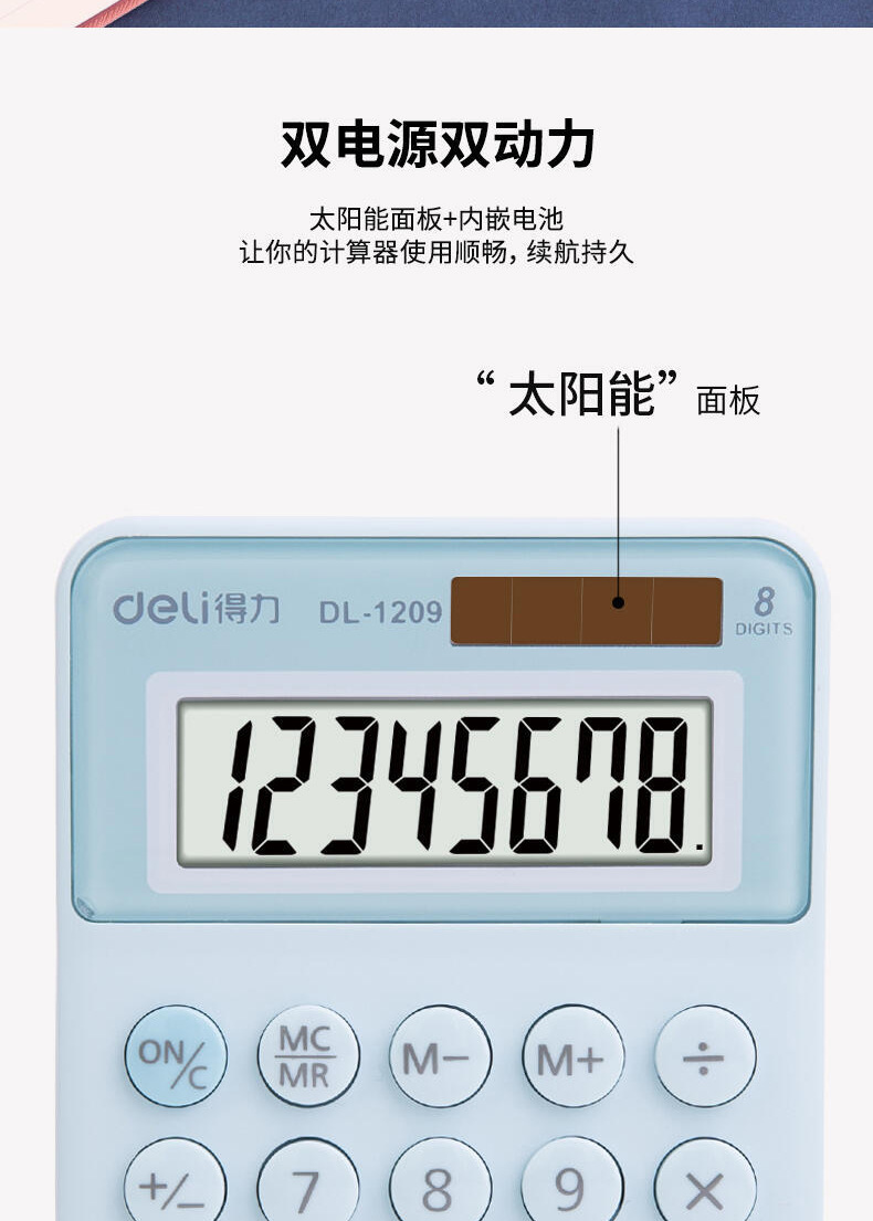 델리 1209A 계산기 학생들은 8 비트 대형 스크린 금융 듀얼 파워 컴퓨터 데스크톱 계산기 사용
