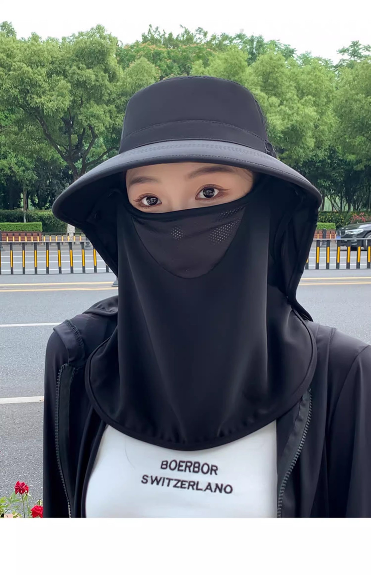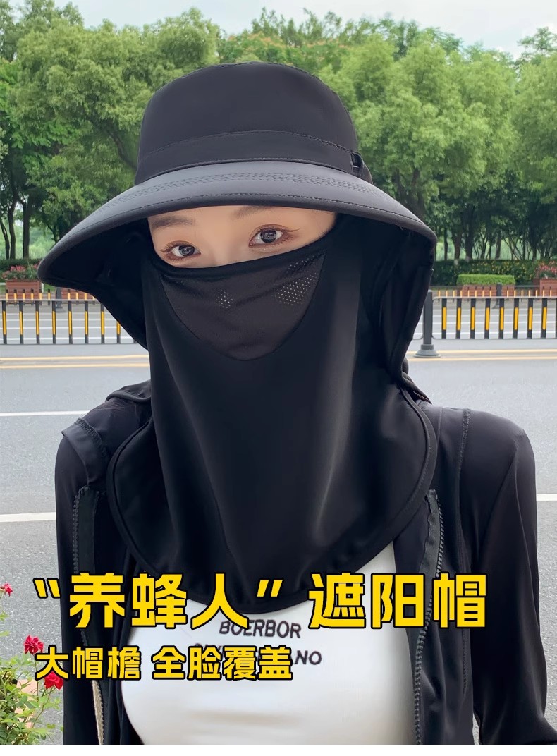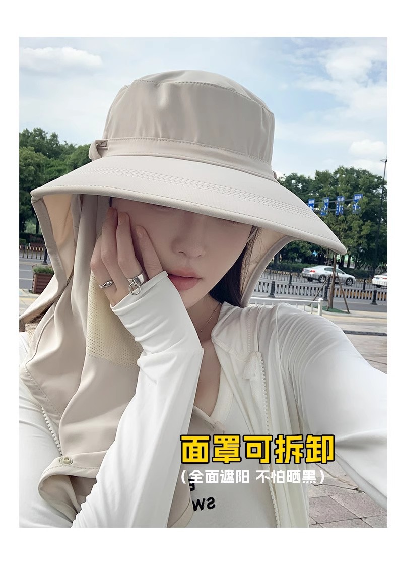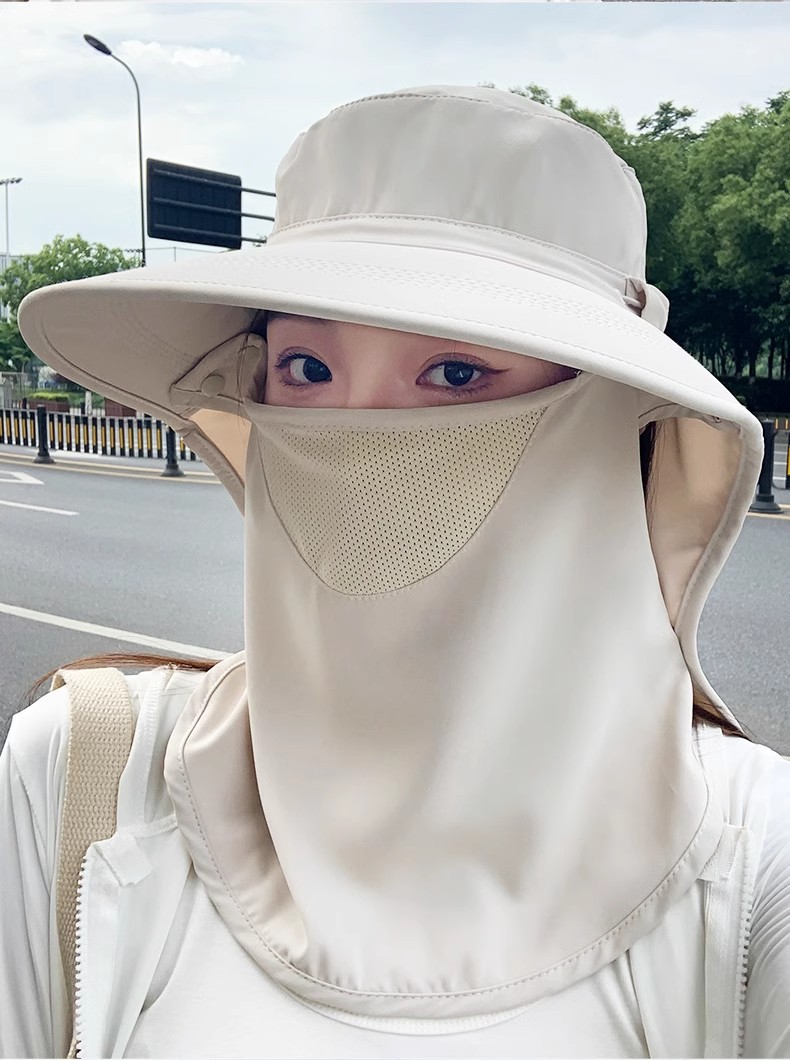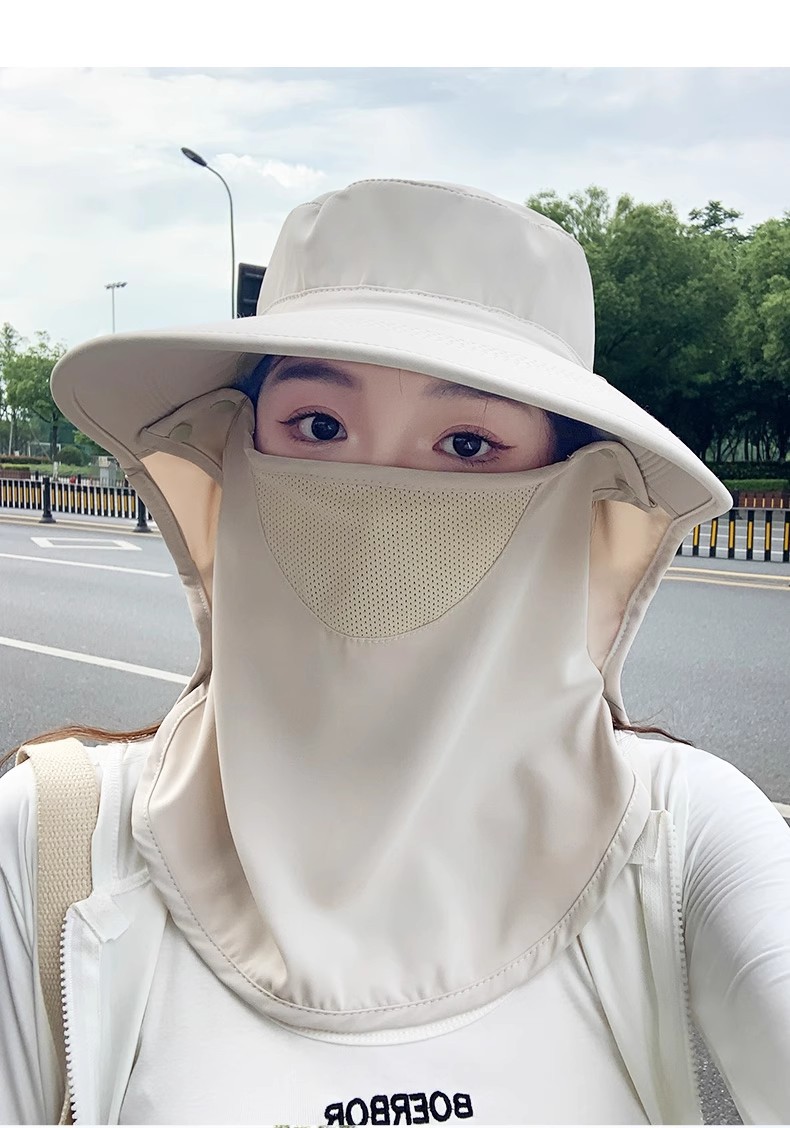 모든 라운드 선 스크린 모자 통기성 얼굴 마스크 목 보호 통합 태양 모자 UV 보호 야외 태양 모자 여성