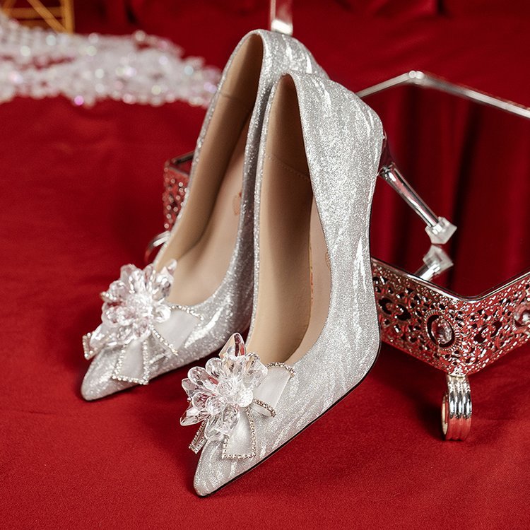 크리스탈 웨딩 신발 신부 신발 여성의 2025 새로운 웨딩 원피스 Xiuhe 원피스 두 착용 프랑스 실버 하이힐 여성용 스틸레토 힐스토어 가기