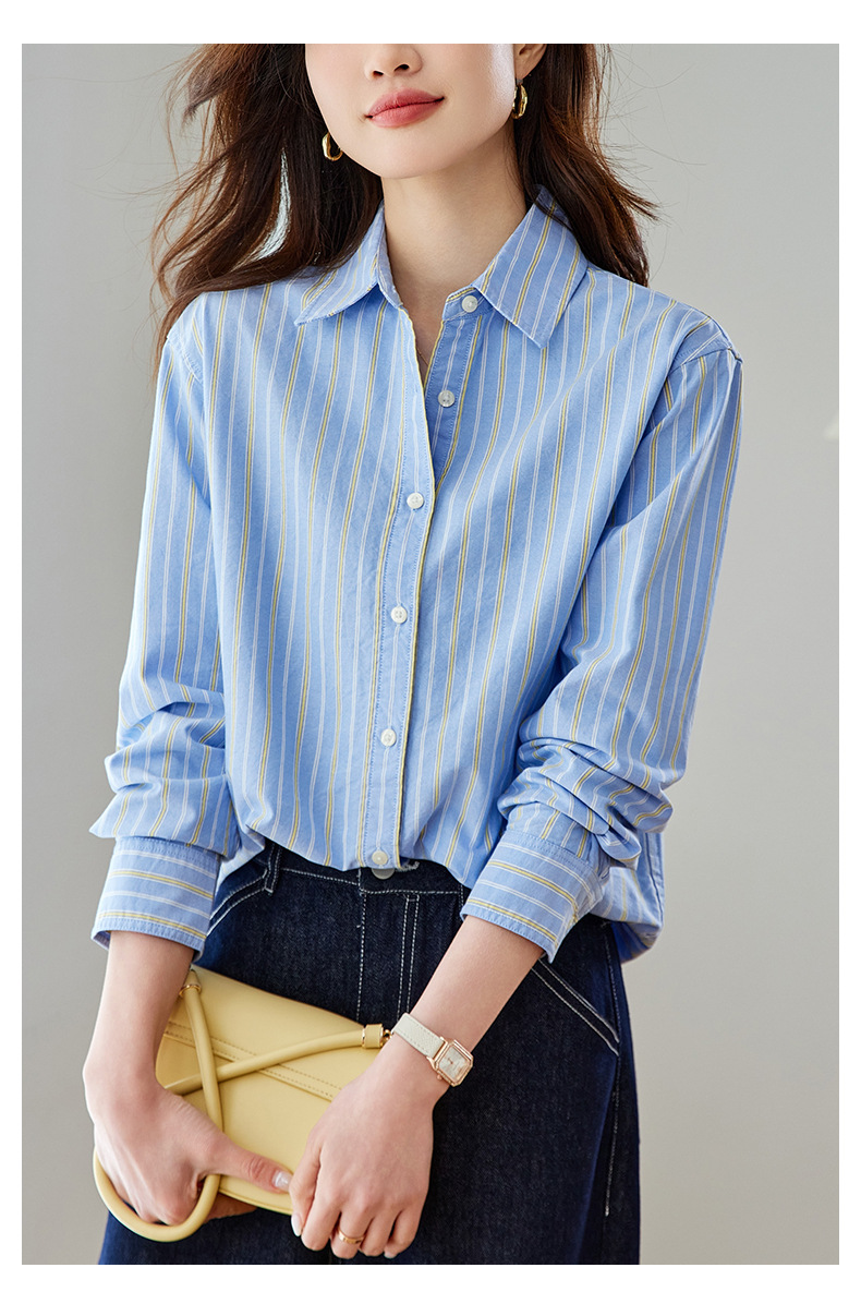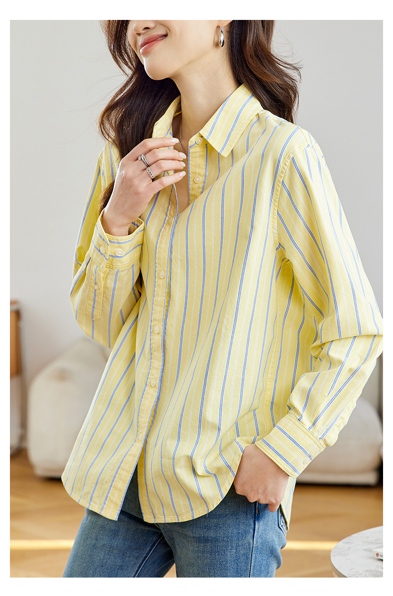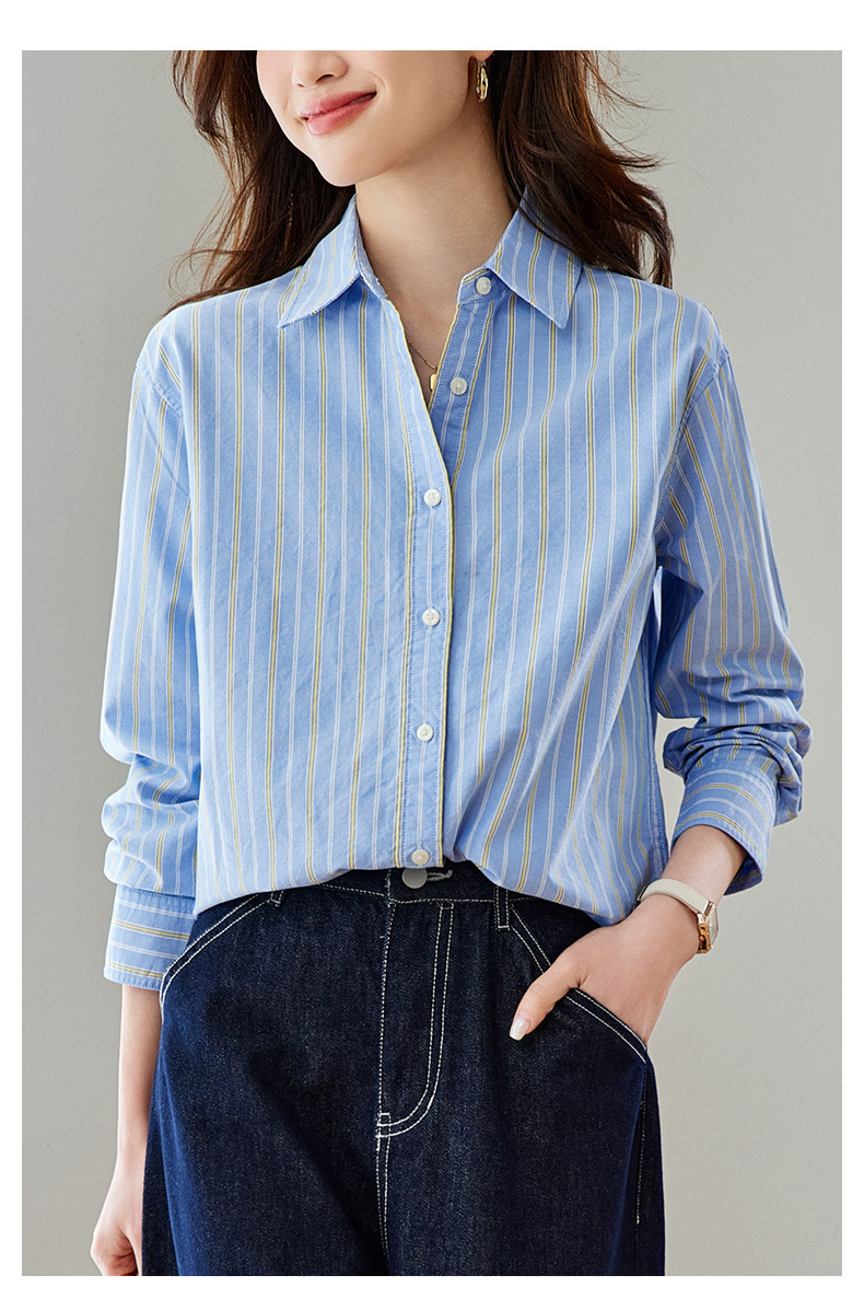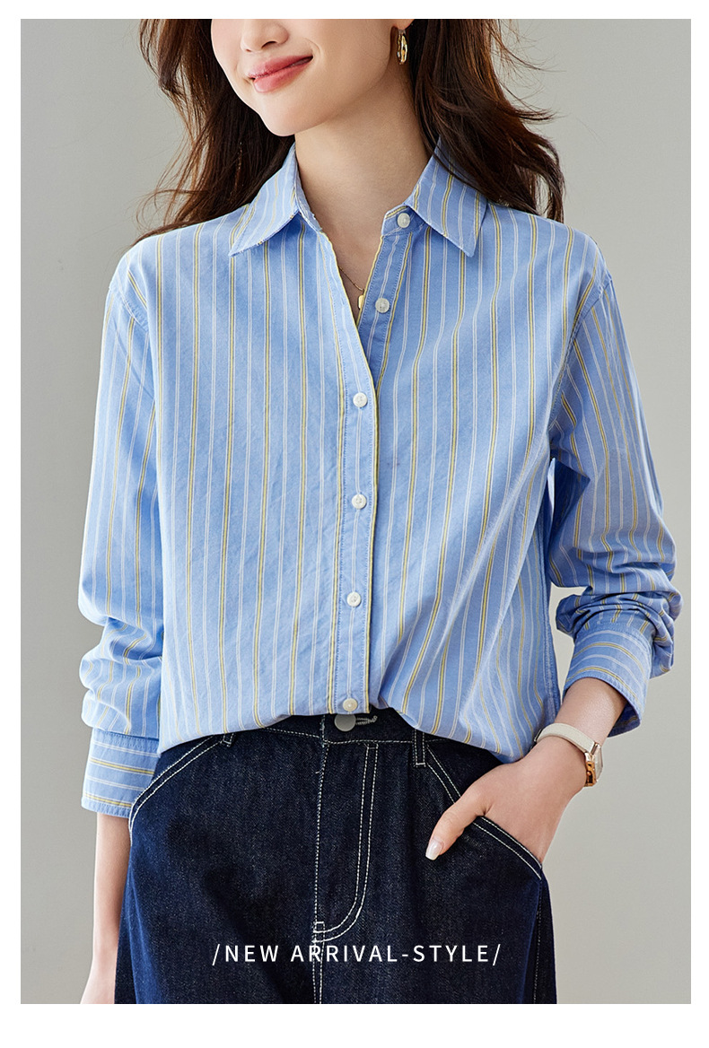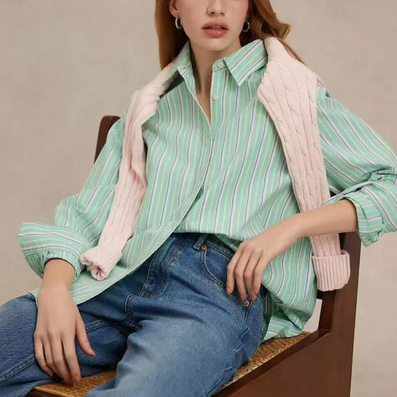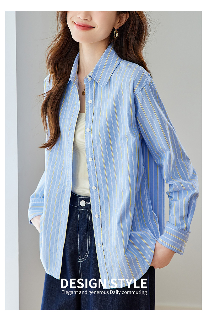 공장 직판 배색 스트라이프 셔츠 여성용 2026 봄 가을 신상 캐주얼 루즈핏 탑 한국 스타일 패션 셔츠스토어 가기