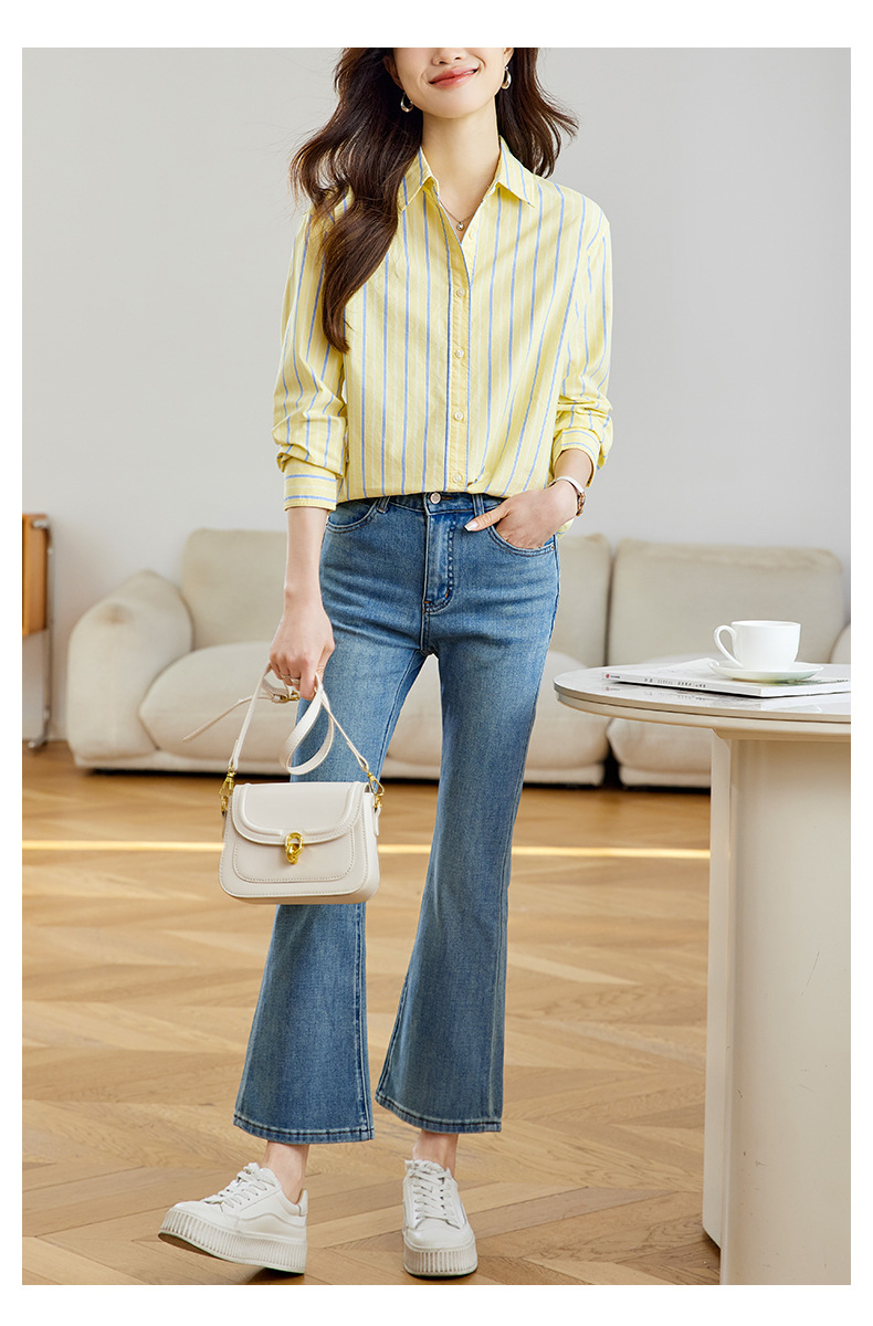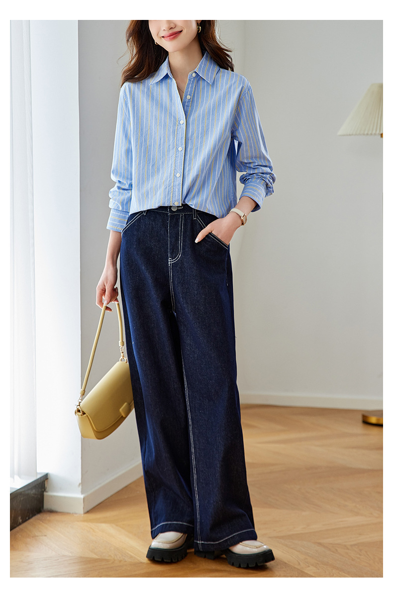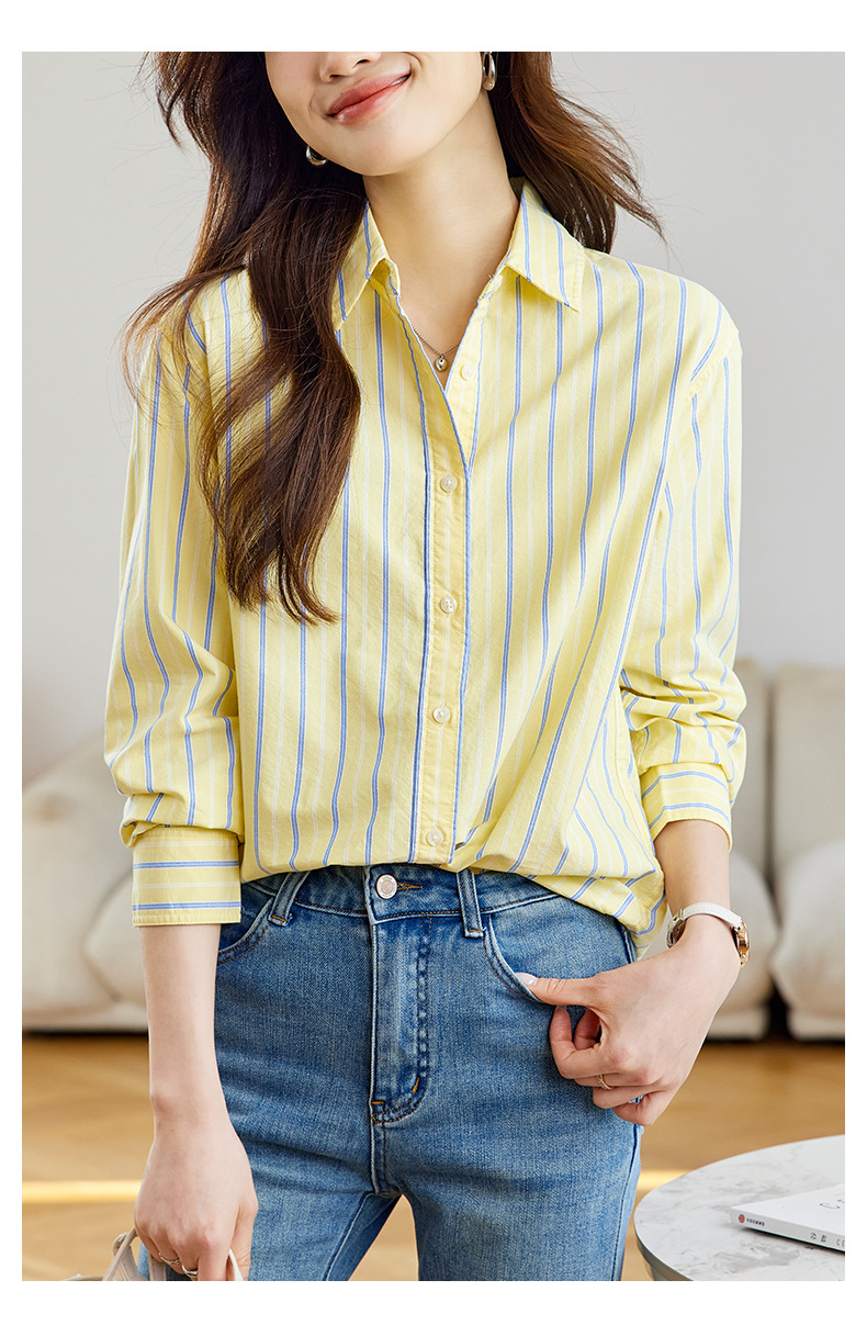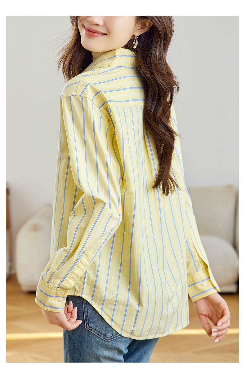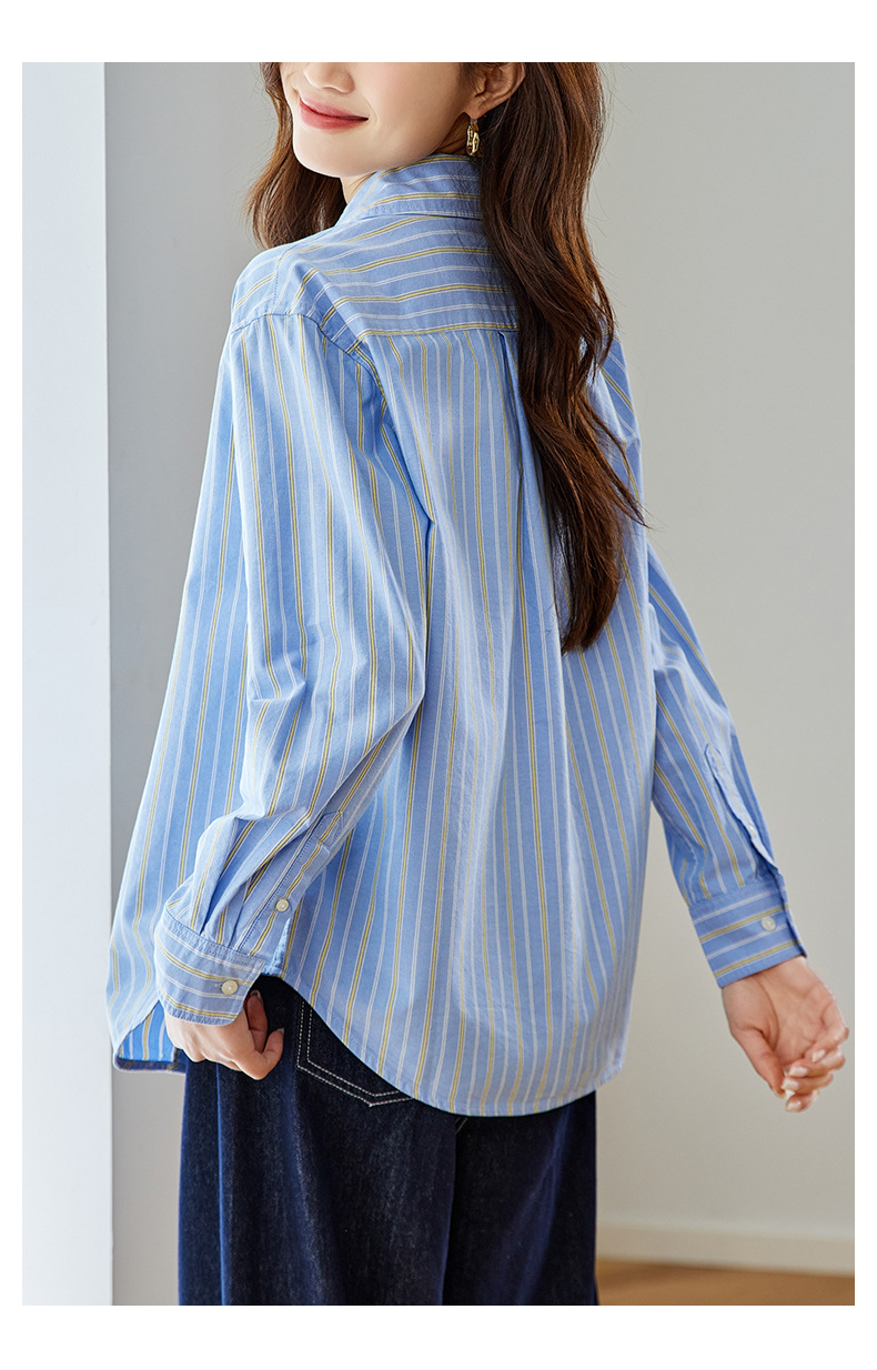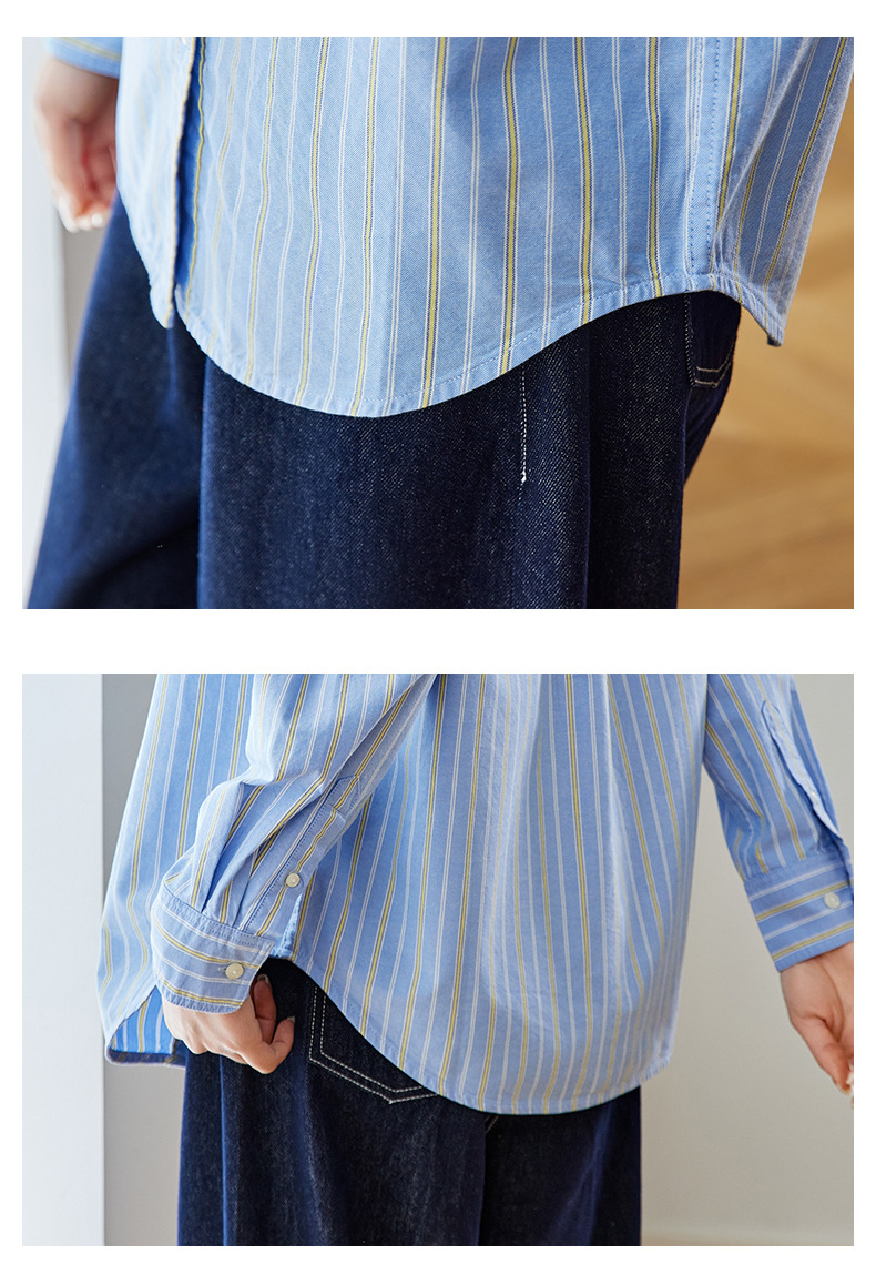 공장 직판 배색 스트라이프 셔츠 여성용 2026 봄 가을 신상 캐주얼 루즈핏 탑 한국 스타일 패션 셔츠스토어 가기