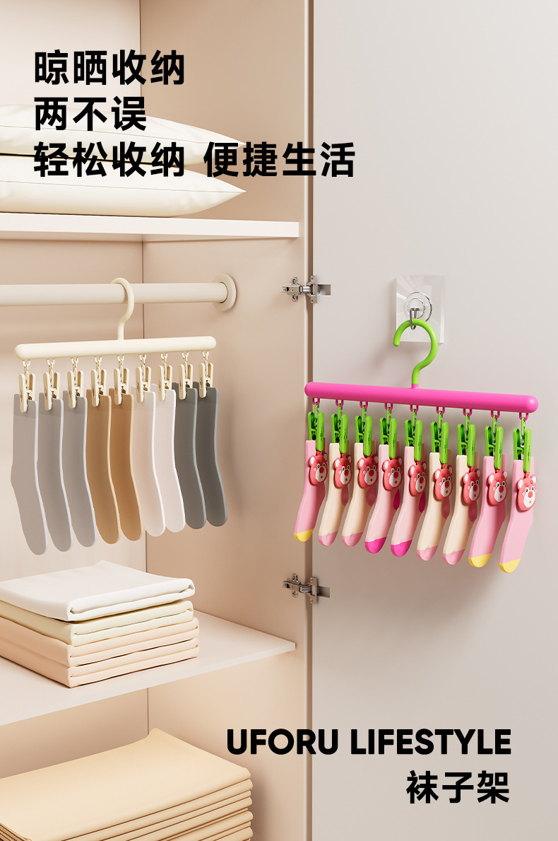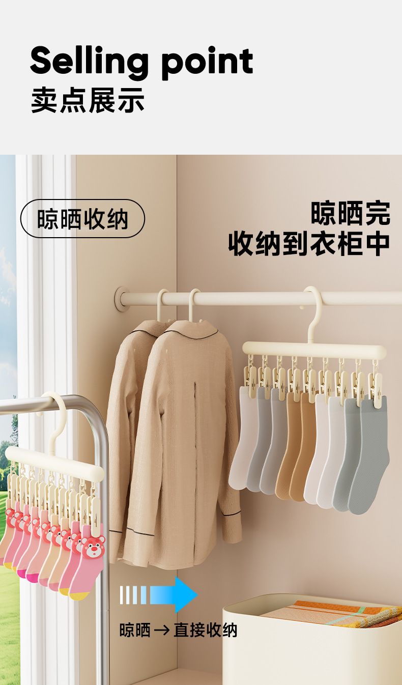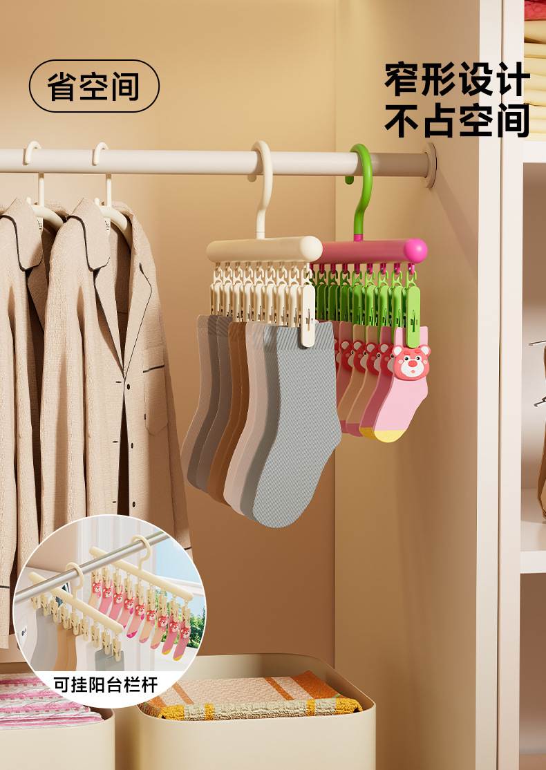 옷걸이 가정용 옷걸이 클립 포함 무자국 다기능 옷걸이 대용량 일자형 양말 속옷 건조대
