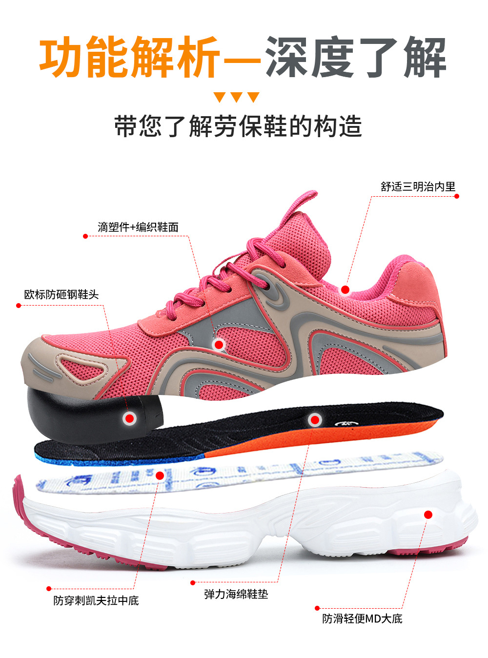 새로운 국경 노동 보호 신발 스매싱 방지 및 피어싱 방지 안전 신발 경량 편안한 통기성 여성 작업 신발스토어 가기