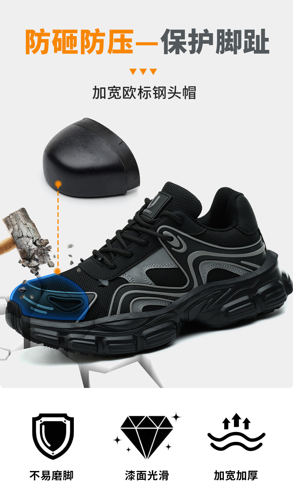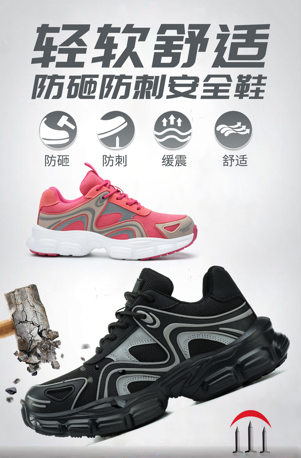 새로운 국경 노동 보호 신발 스매싱 방지 및 피어싱 방지 안전 신발 경량 편안한 통기성 여성 작업 신발