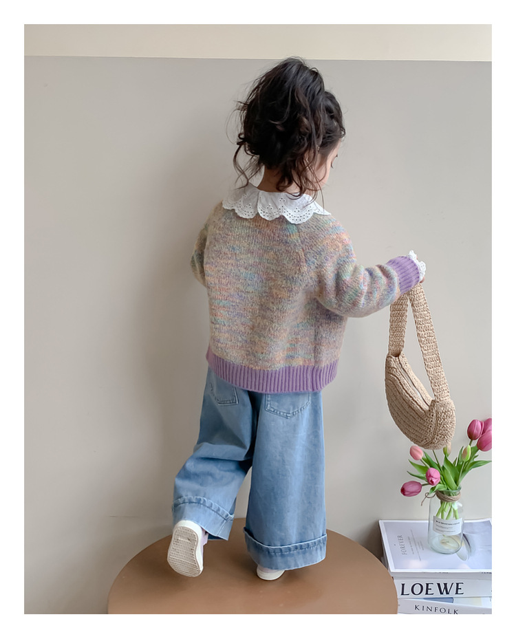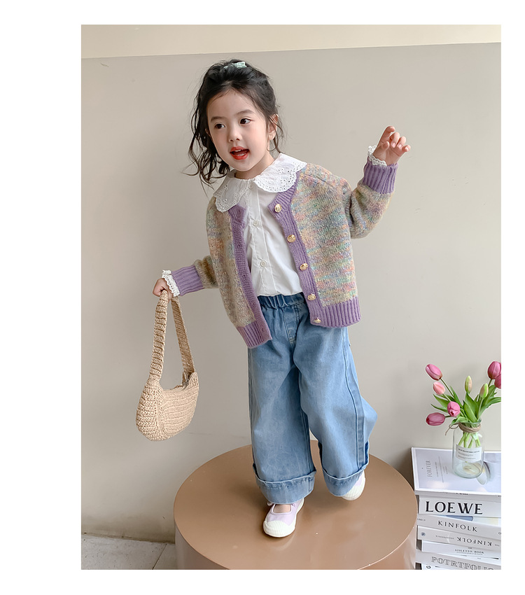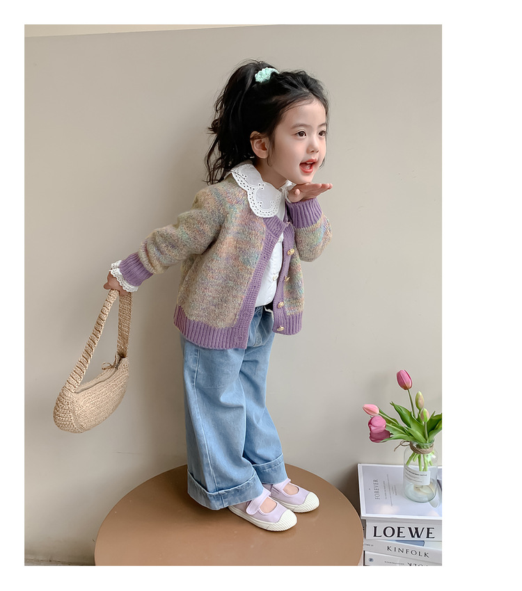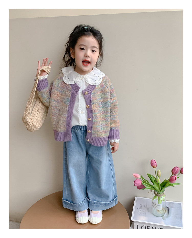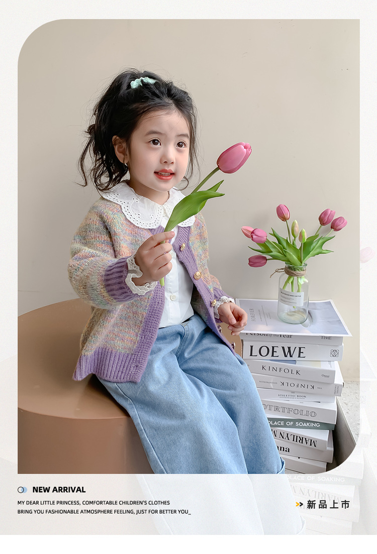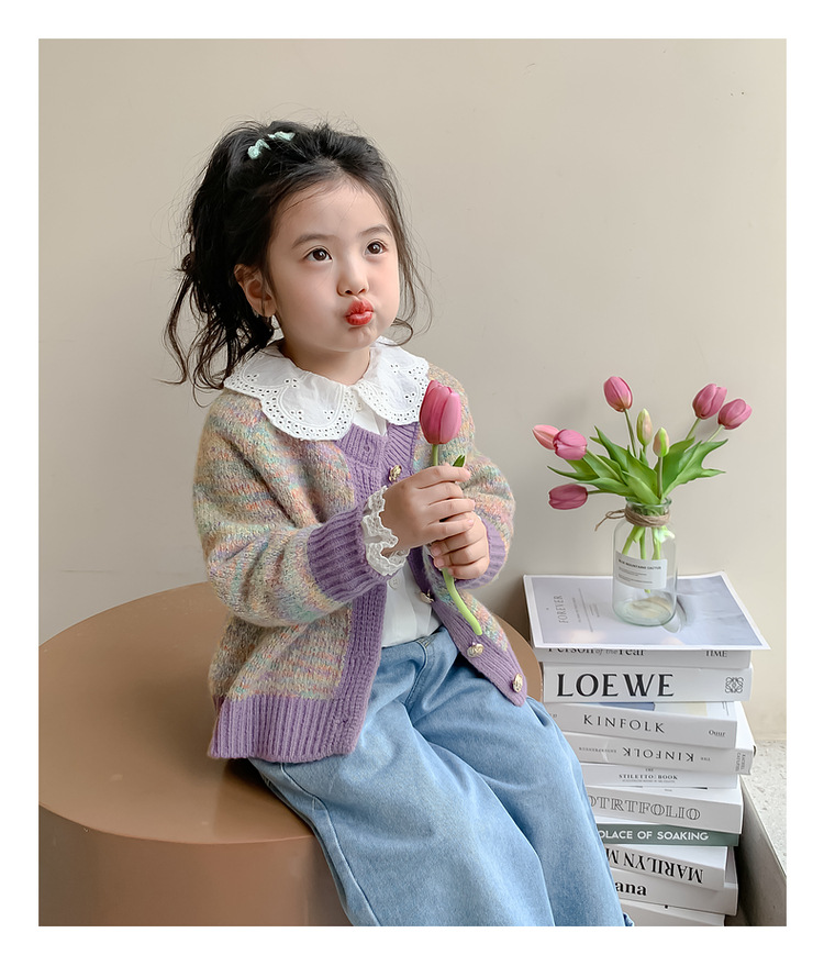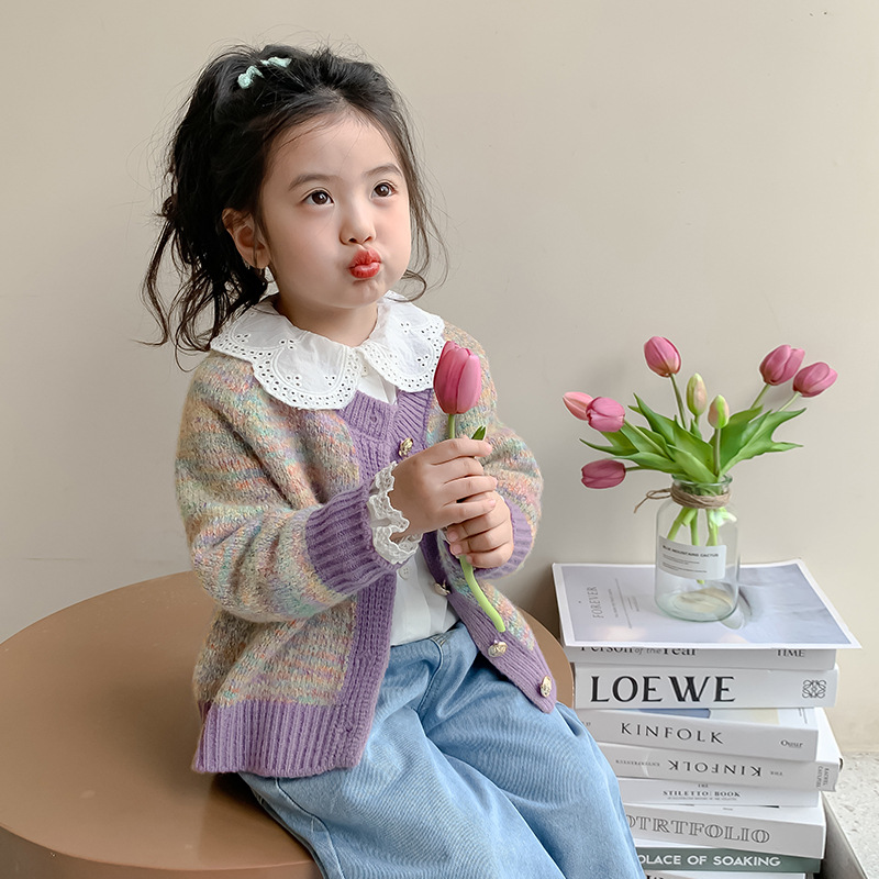 소녀 니트 카디건 봄과 가을 2025 새로운 어린이 서양식 스웨터 코트 어린이 올 매치 캐주얼 탑
