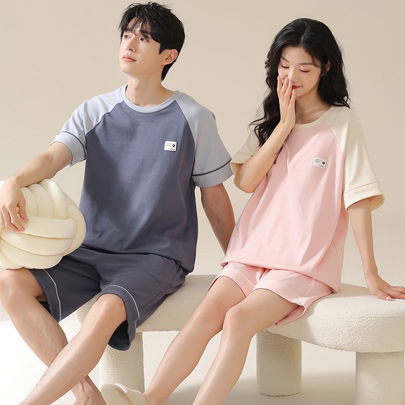 순면 커플 잠옷 여름 얇은 남성 플러스 사이즈 반팔 반바지 여름 여성 홈 의류 세트 외복스토어 가기
