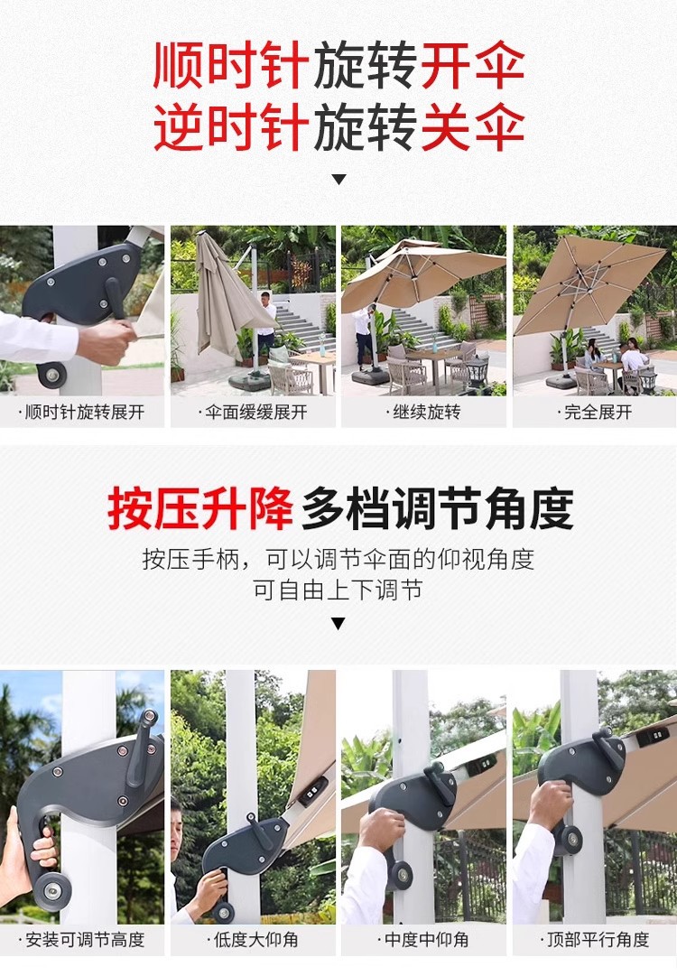• 5년 보증: 럭셔리 이중 극 모델/ 3m + 150kg 물 탱크 베이스/ 8cm 알루미늄 극/조명 포함