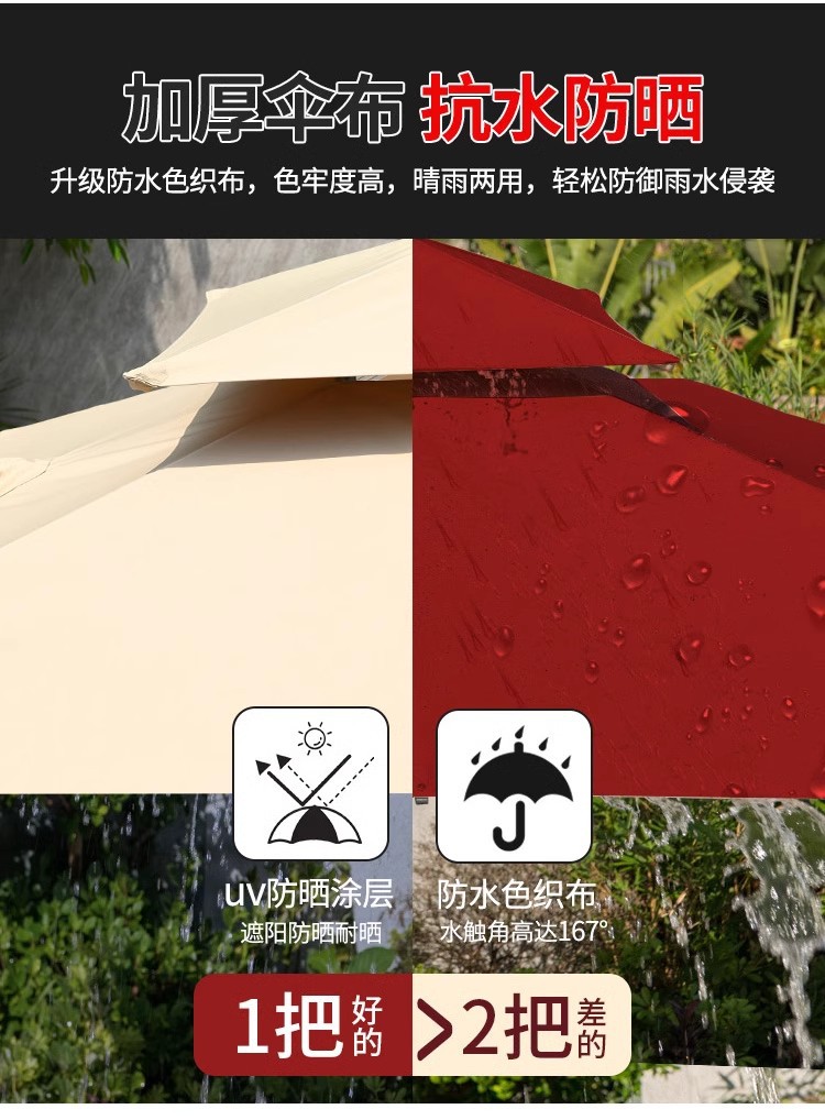 • 5년 보증: 럭셔리 이중 극 모델/ 2.5m + 190kg 물 탱크 베이스/ 8cm 알루미늄 극/조명 포함