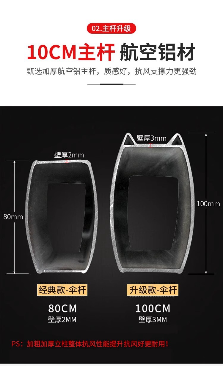 • 5년 보증: 럭셔리 이중 극 모델/ 2.5m + 150kg 물 탱크 베이스/ 8cm 알루미늄 극/조명 없음