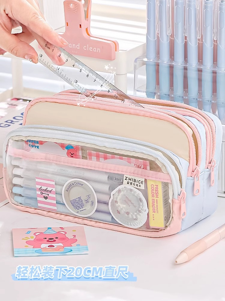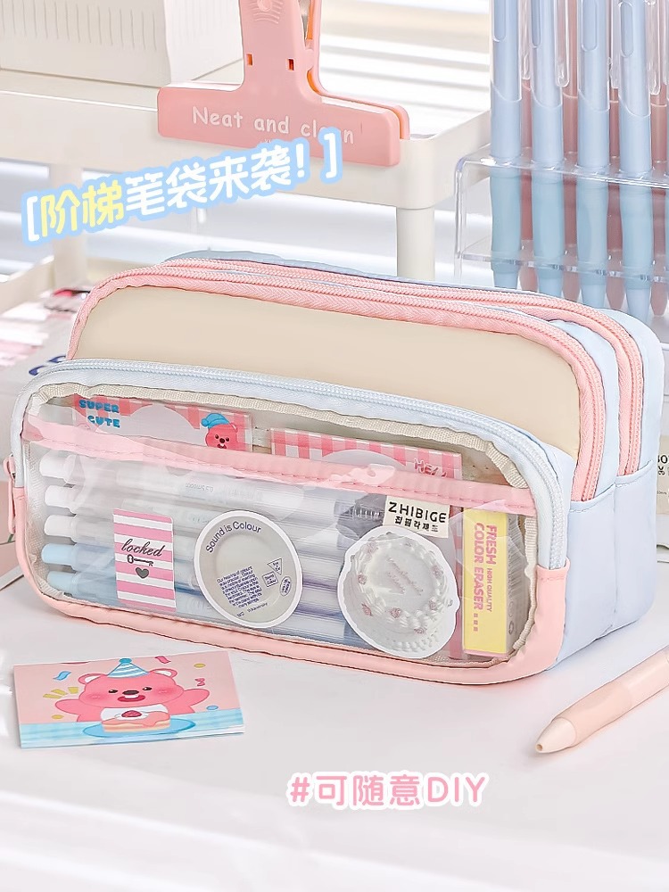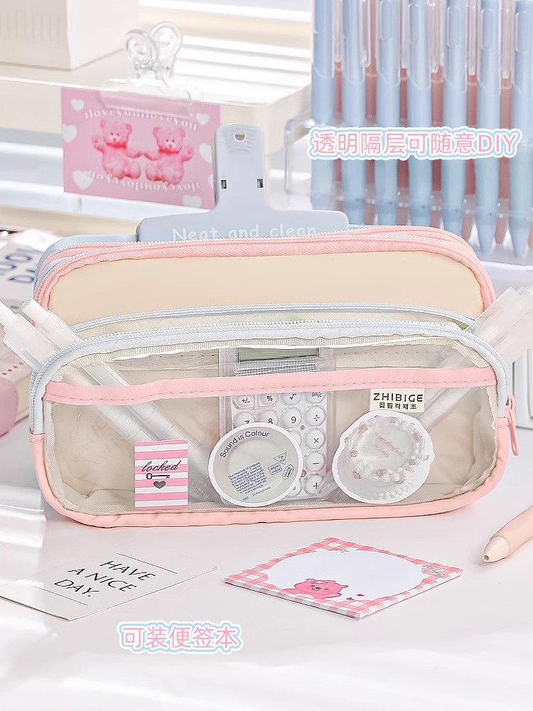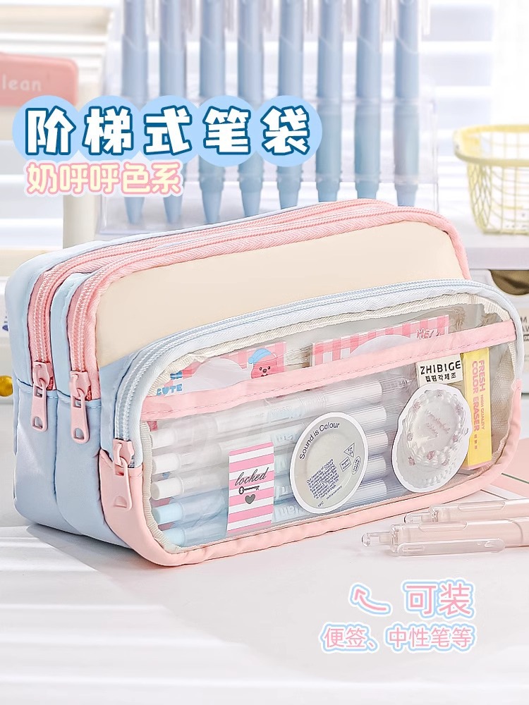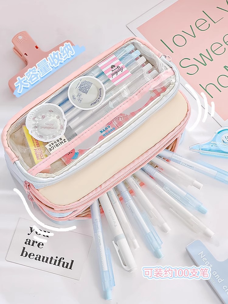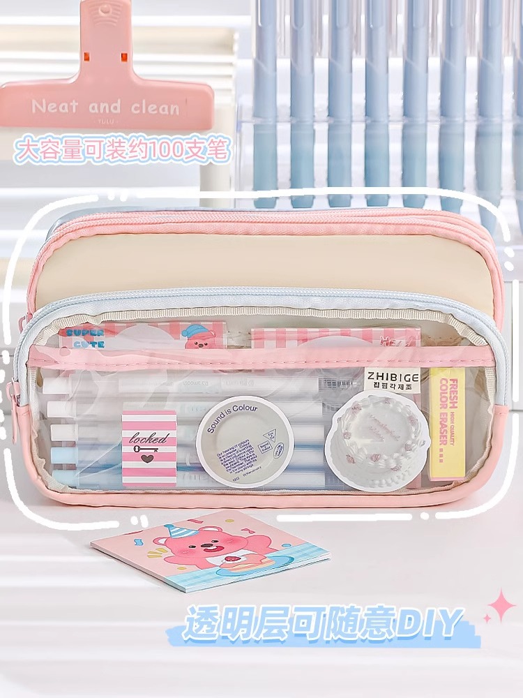크기 색상 일치 o00 연필 케이스 투명 대용량 문구 가방 창조적 인 다기능 문구 가방 일본 높은 색상 가치
