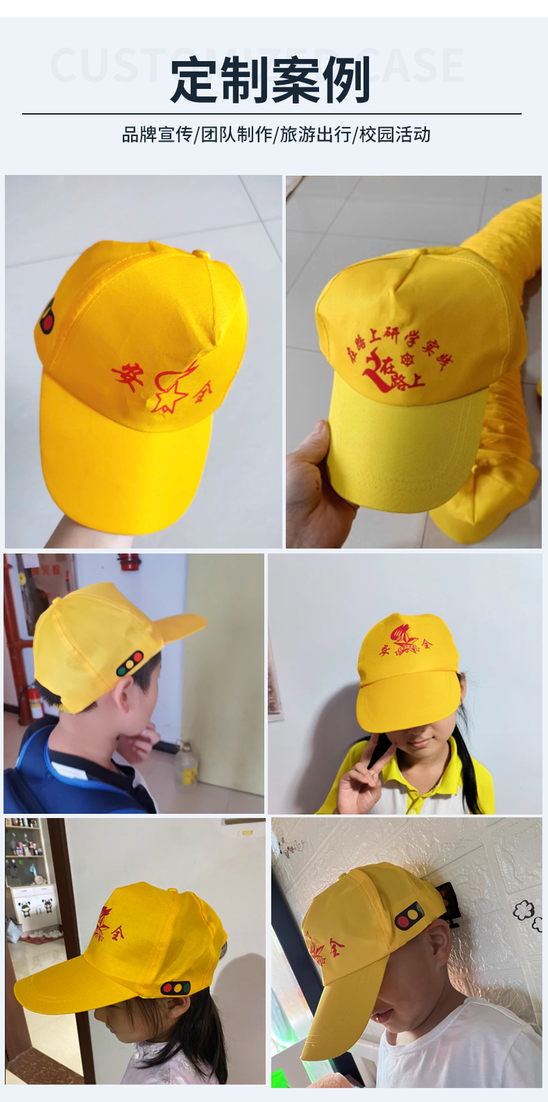 유치원 어린이 노란 모자 광고 인쇄 학생 도로 교통 신호등 안전 노란 모자를 건너는 젊은 개척자