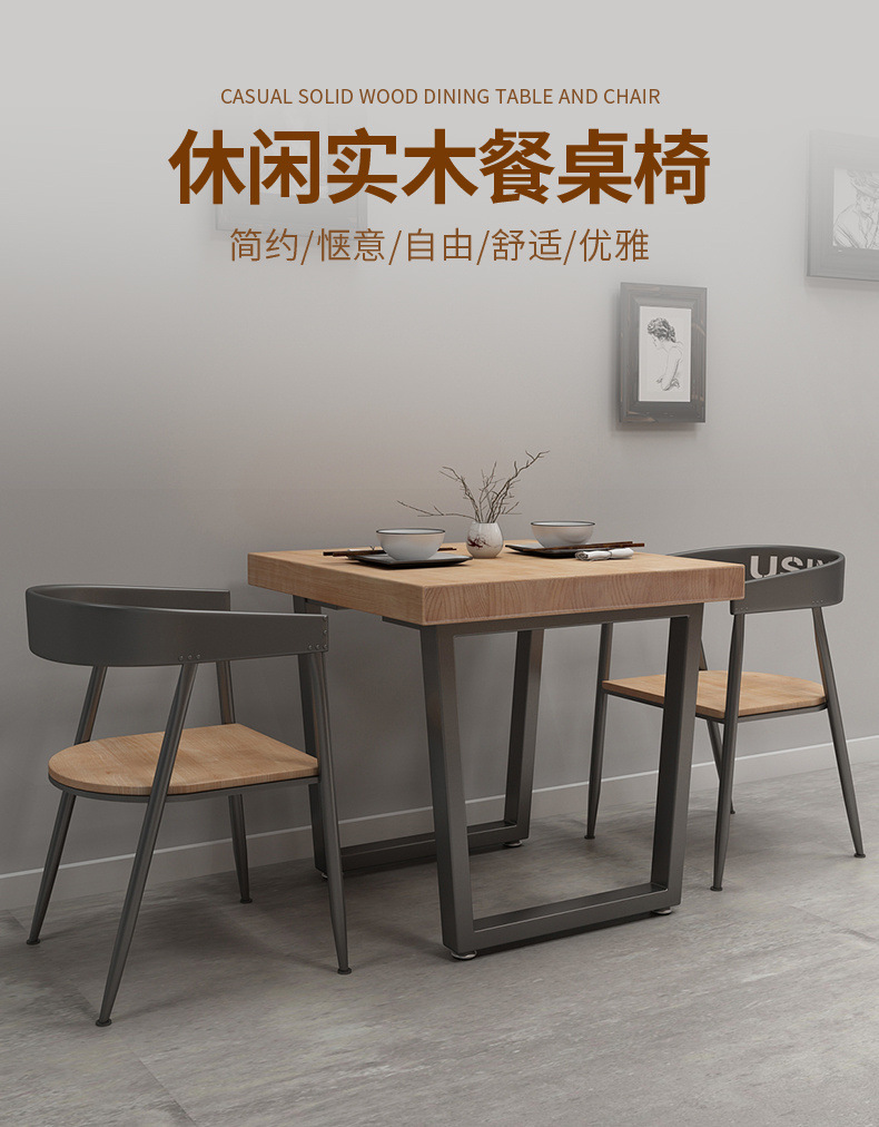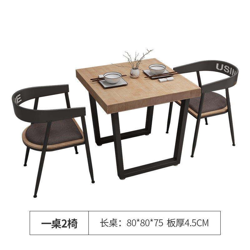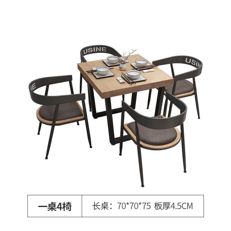 아메리칸 스타일 솔리드 우드 스퀘어 테이블 커피 숍 밀크 티 샵 테이블과 의자 조합 간단한 철 스퀘어 테이블 레스토랑 식탁 및 의자