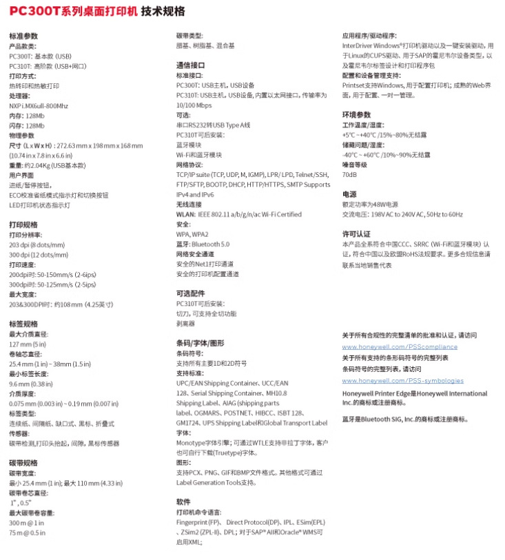 HONEYWELL Honeywell PC300T/PC310T 바코드 프린터 열 전송 비디오 라벨 시트스토어 가기