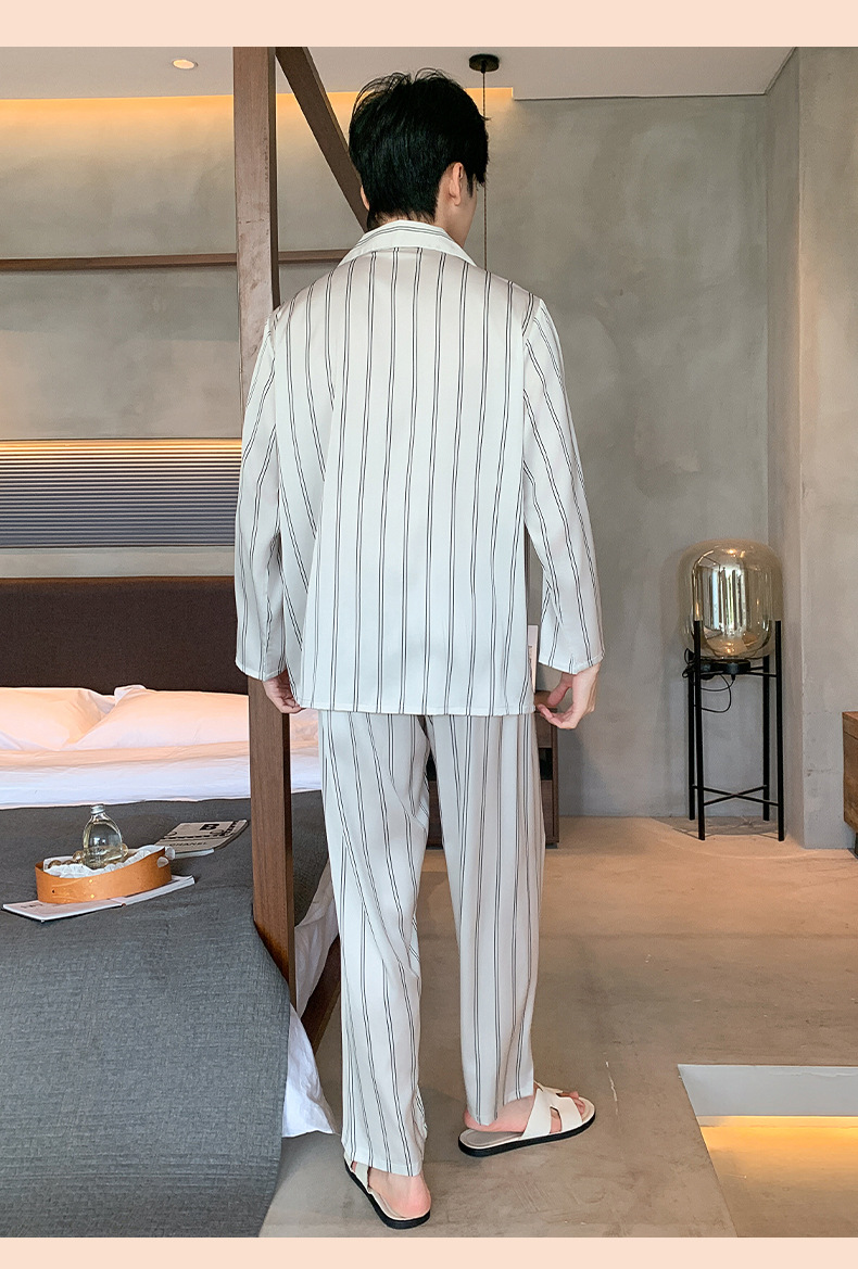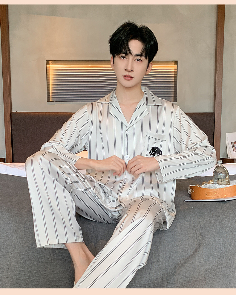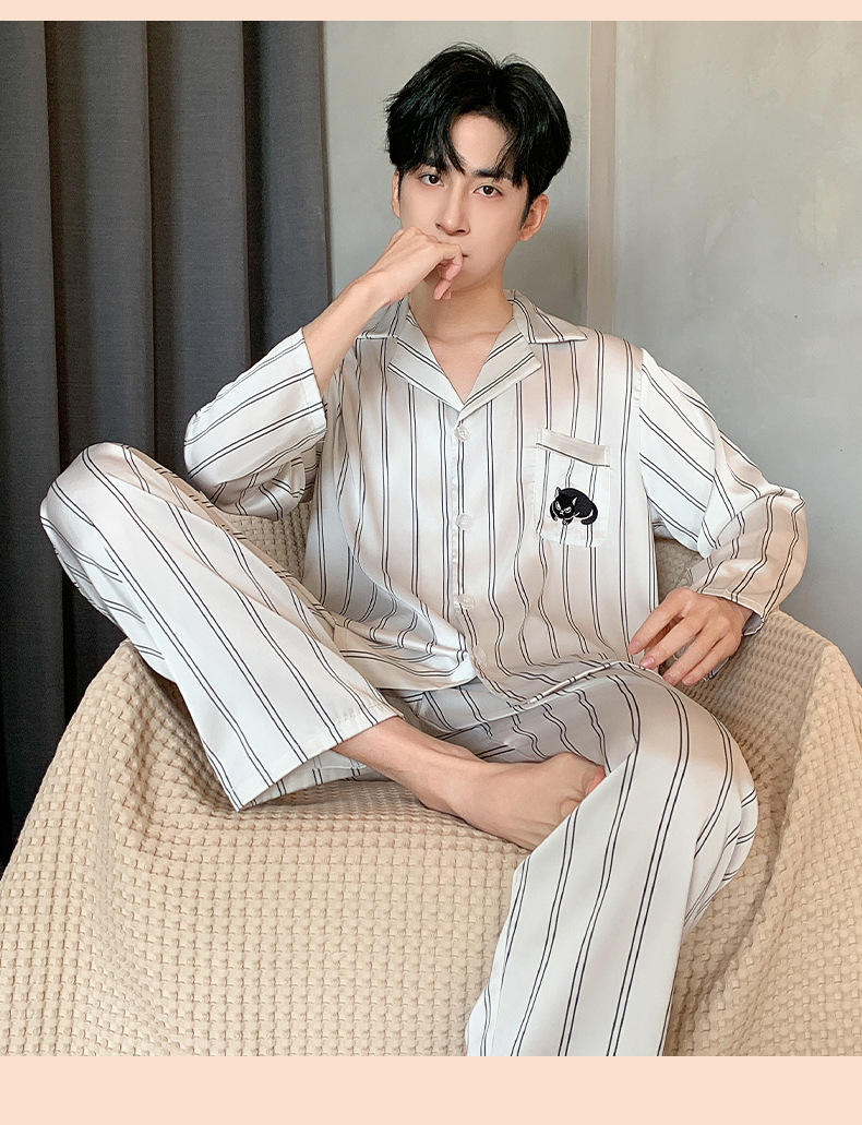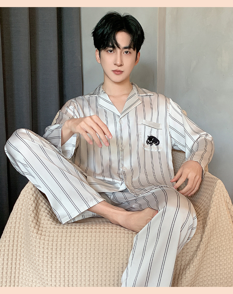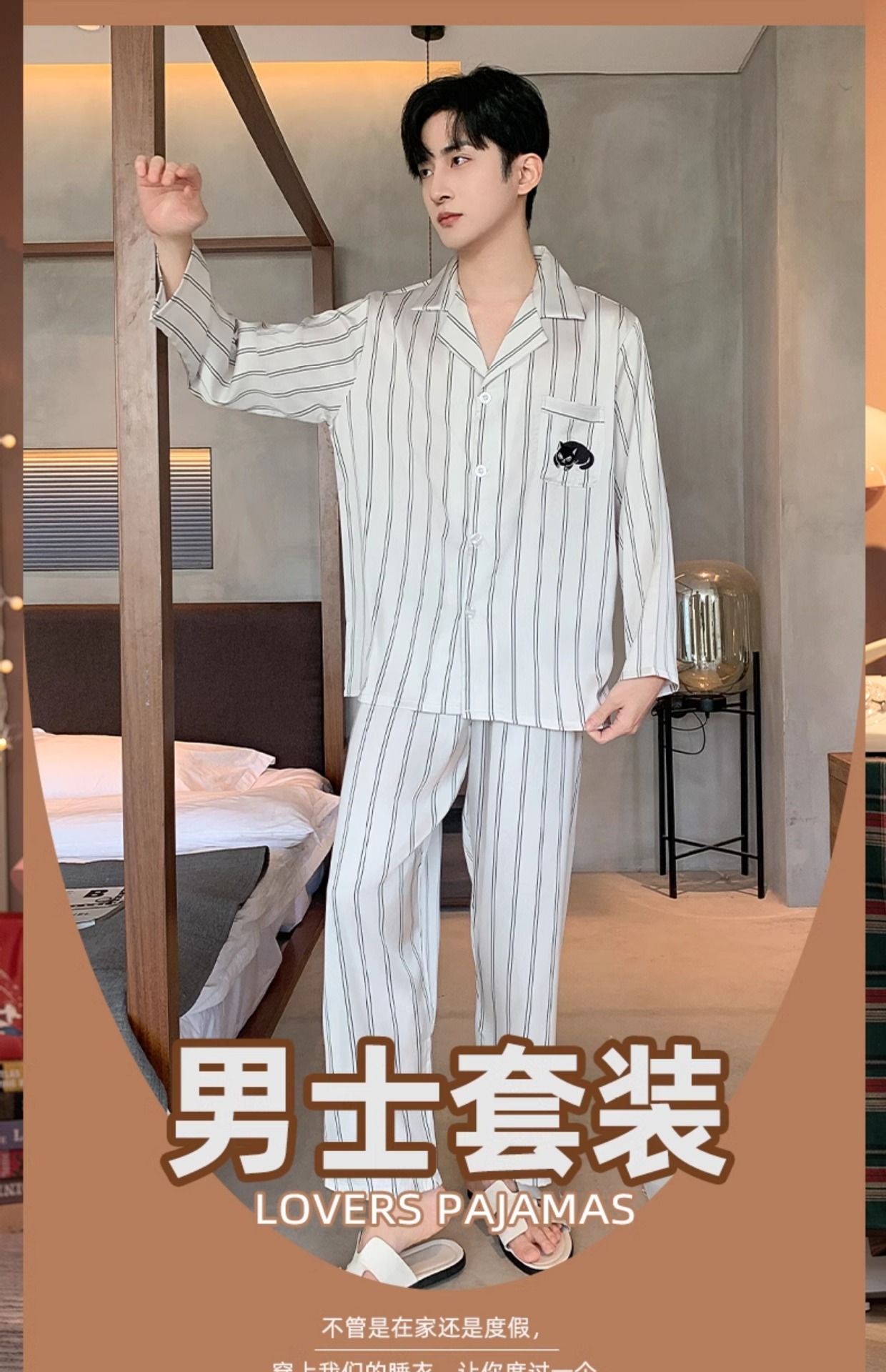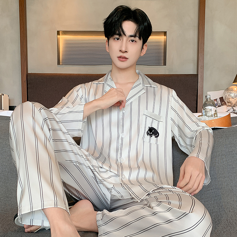 남성용 아이스 실크 잠옷 2025년 신상 봄 가을 얇은 대형 사이즈 긴팔 세트 홈웨어 B10-536스토어 가기