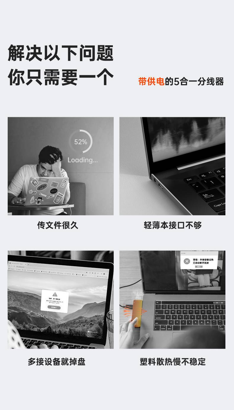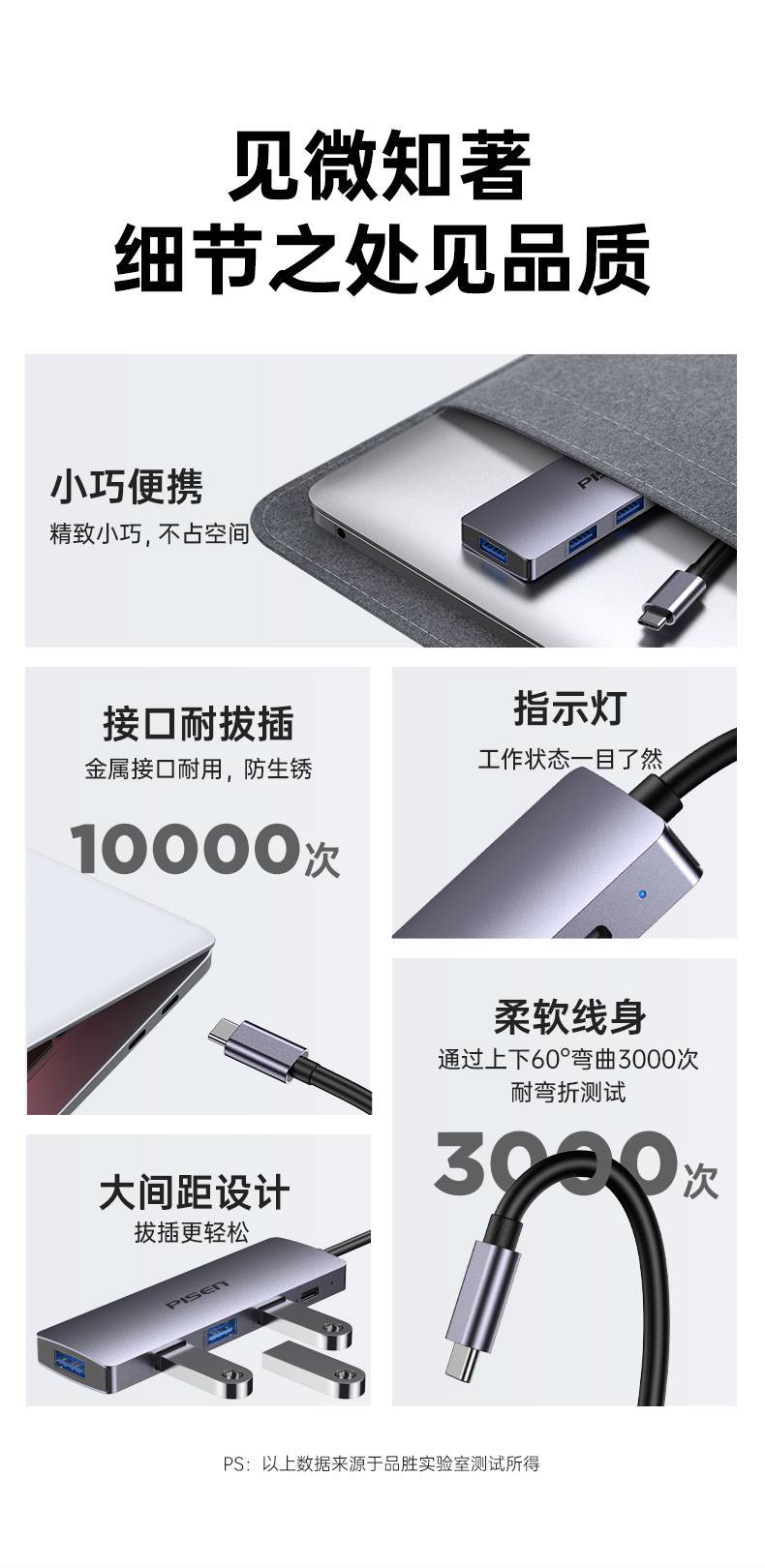 Pinsheng Type-C Extender 5-in -1 다기능 허브 스플리터 컴퓨터 외부 어댑터 확장 도크스토어 가기