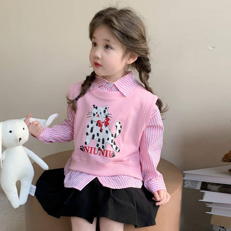 소녀 세트 봄과 가을 2025 새로운 대학 스타일 어린이 셔츠 조끼 투피스 세트 아기 소녀의 봄 탑