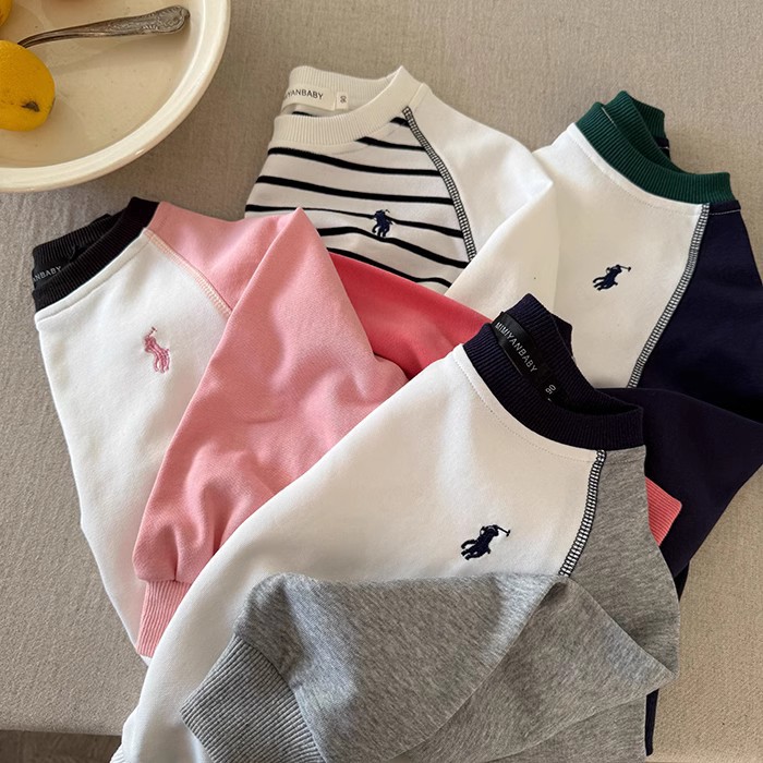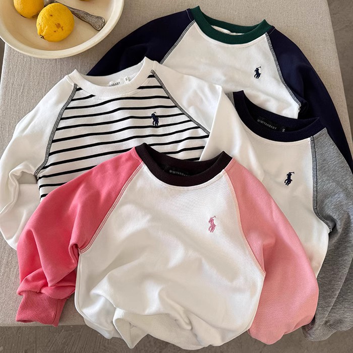 스팟상품! 어린이 티셔츠 소년 소녀를위한 2022 봄 신제품 대비 색 자수 바닥 셔츠 아기 줄무늬 티셔츠 배치스토어 가기
