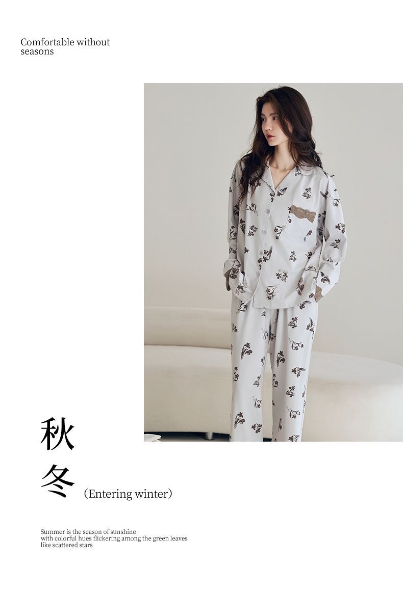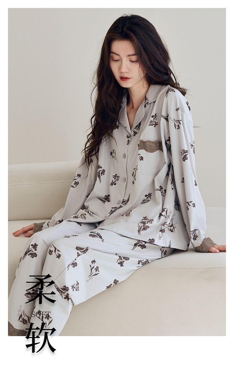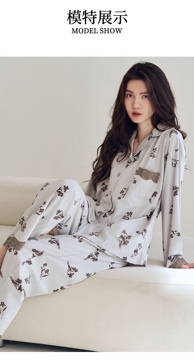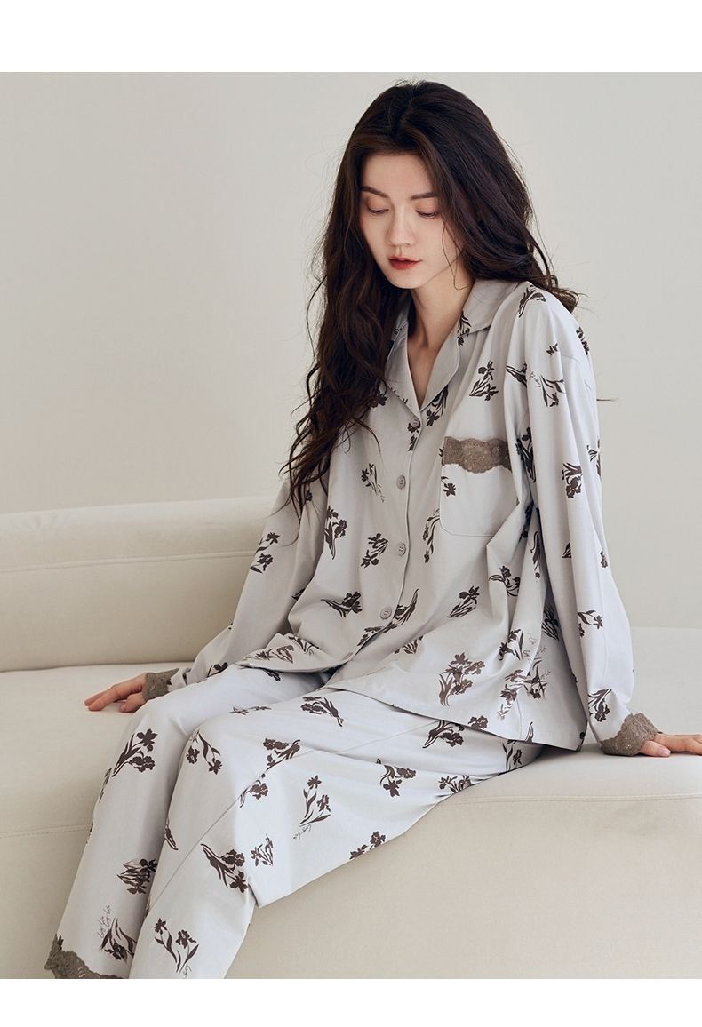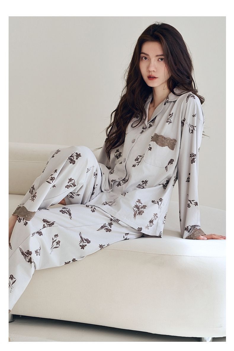 봄과 가을면 긴팔 파자마 여성용 카디건 옷깃 하이 엔드 간단한 한국식 외출 홈 의류 세트스토어 가기