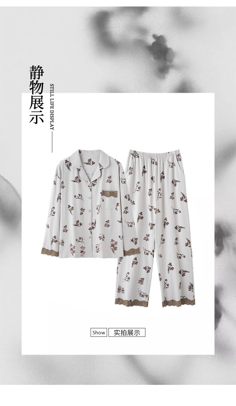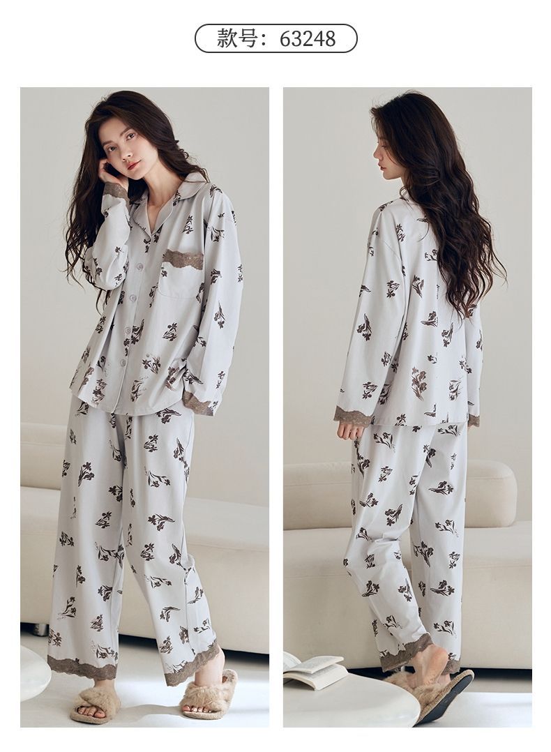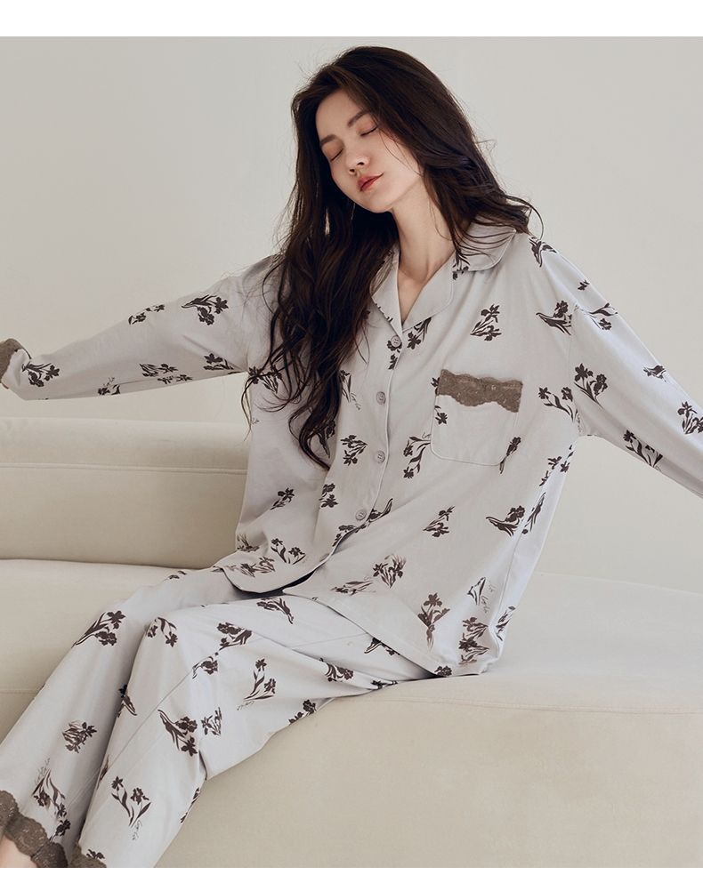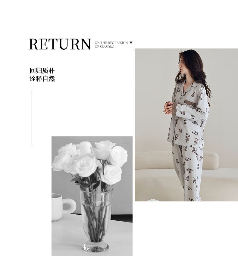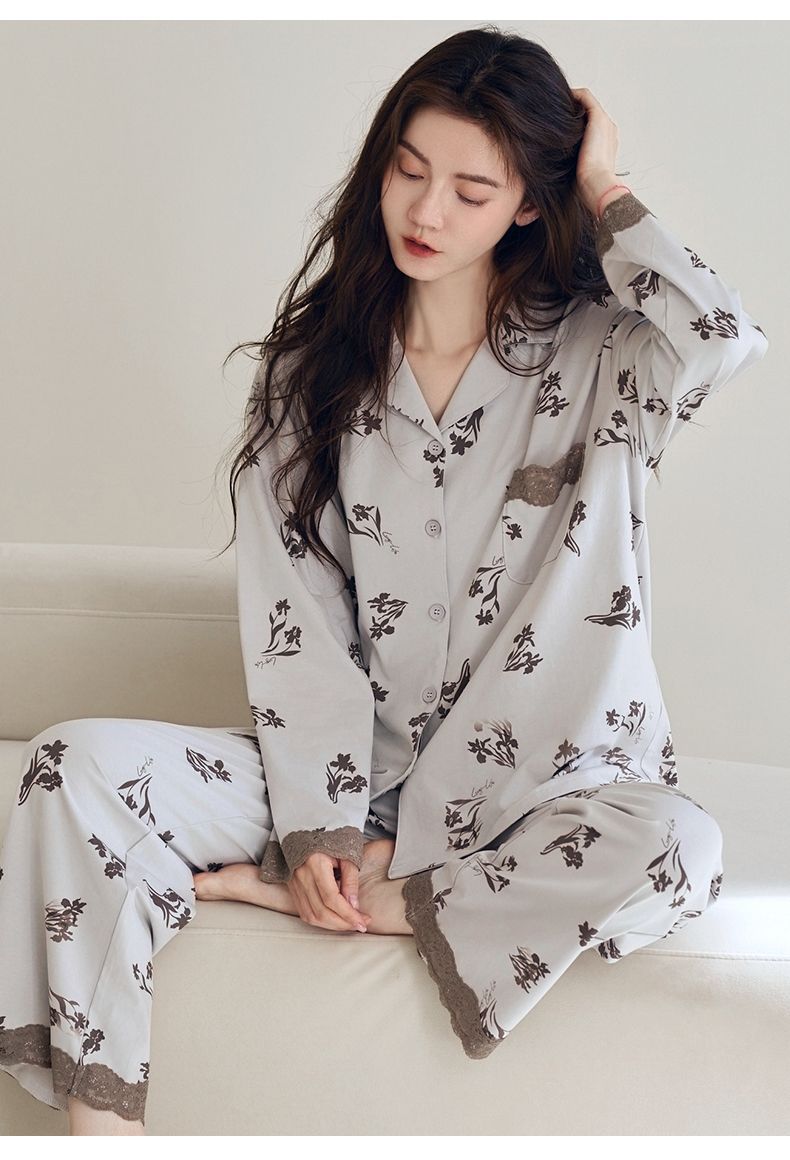봄과 가을면 긴팔 파자마 여성용 카디건 옷깃 하이 엔드 간단한 한국식 외출 홈 의류 세트스토어 가기