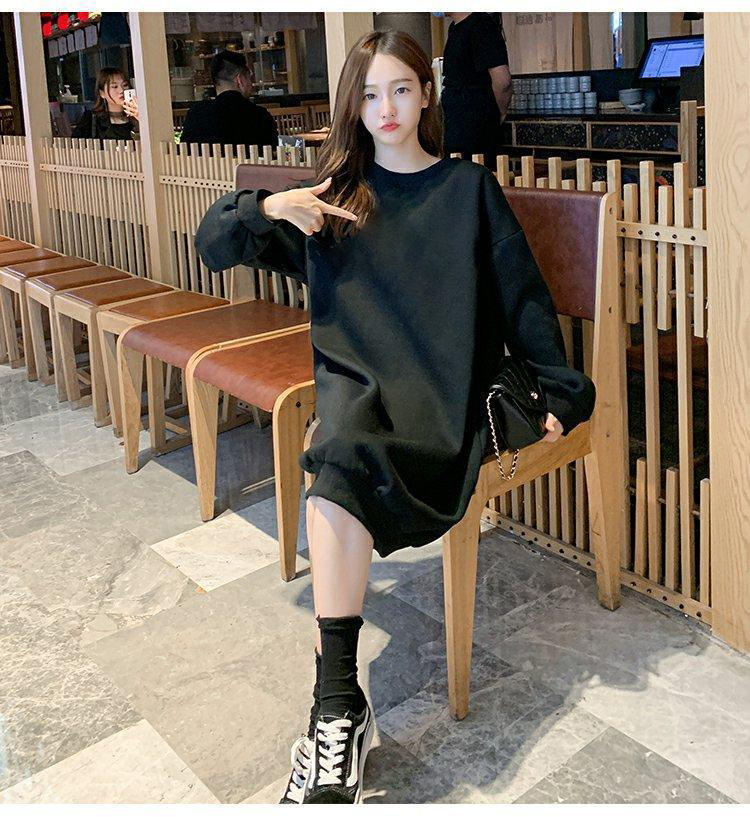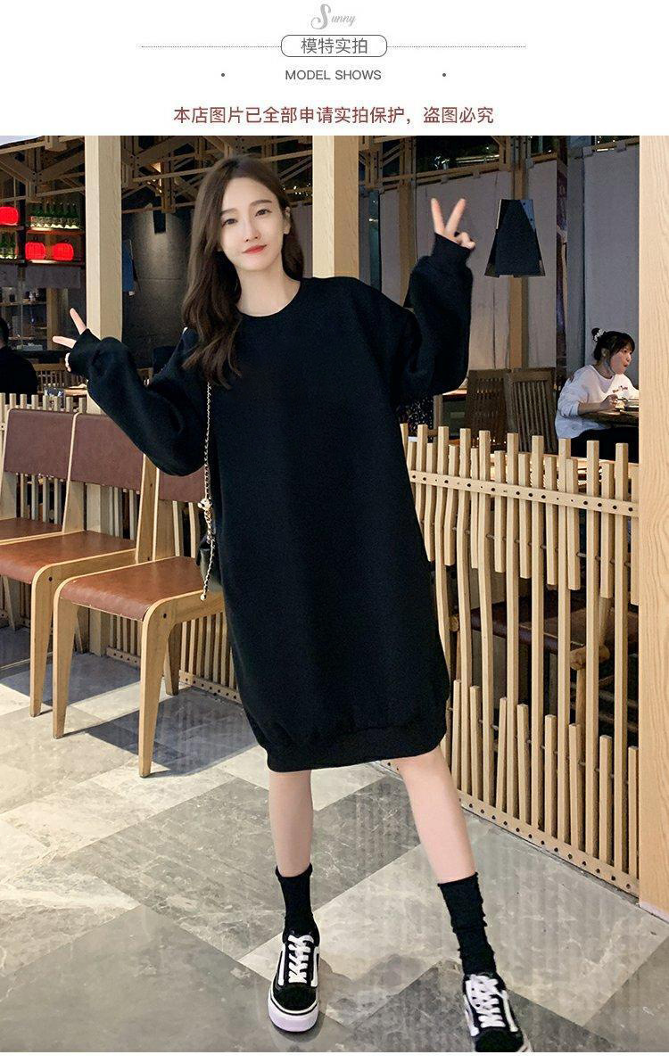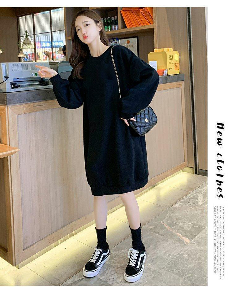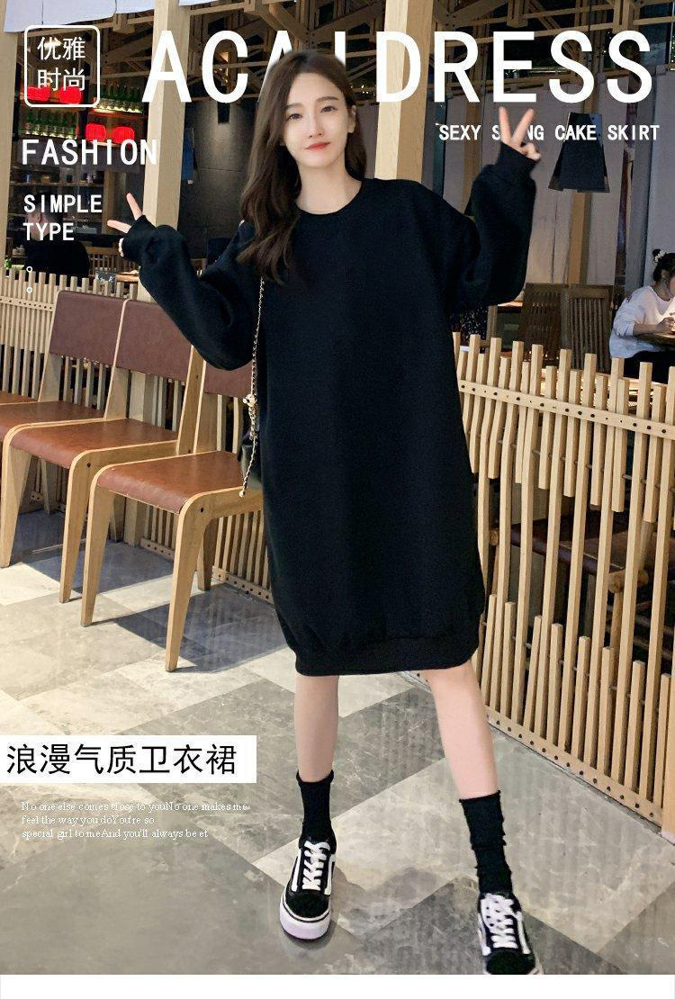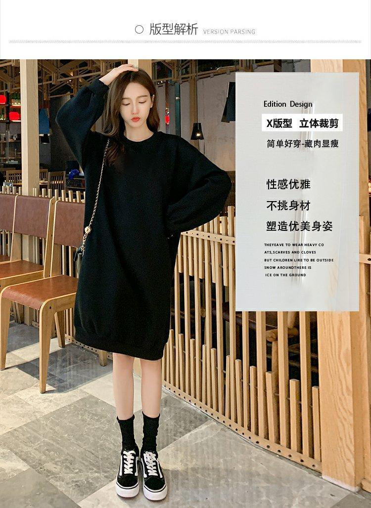 기모 두껍게 250g 플러스 사이즈 연령 감소 중간 원피스 여성 한국 느슨한 슬림 크루 넥 원피스스토어 가기