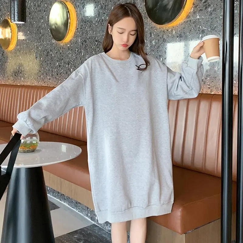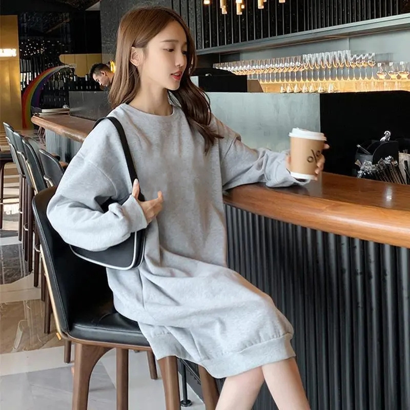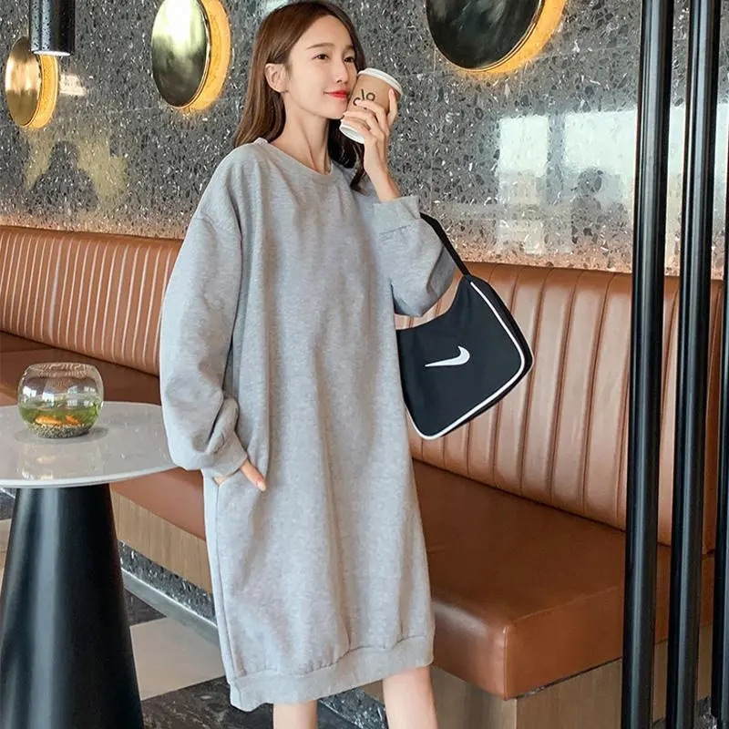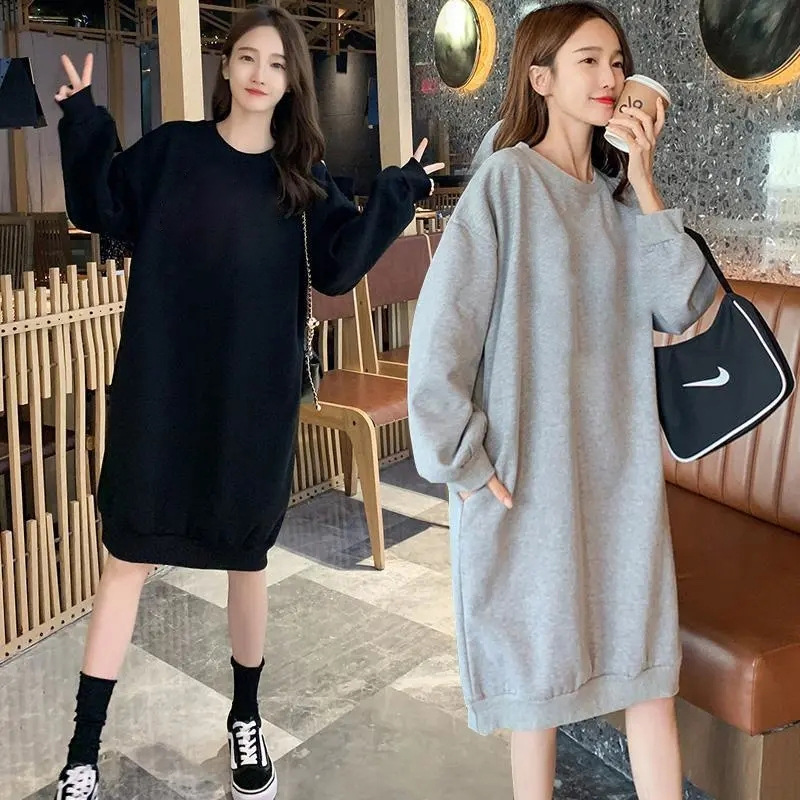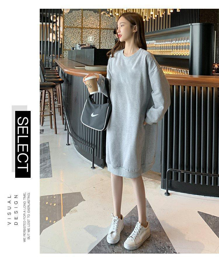 기모 두껍게 250g 플러스 사이즈 연령 감소 중간 원피스 여성 한국 느슨한 슬림 크루 넥 원피스스토어 가기