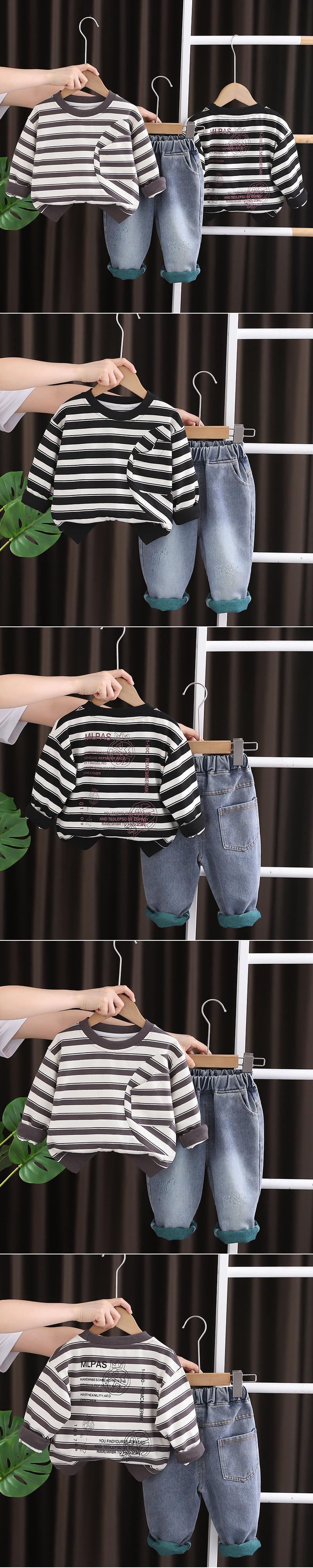 대외 무역 소년 세트 도매 2025 봄 새로운 1-4 세 외국 스타일 3 아기 어린이 봄과 가을 줄무늬 두 옷