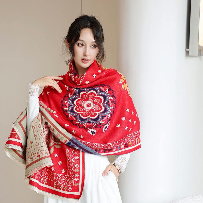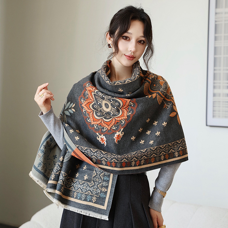 스카프 여자 겨울 올매치 귀여운 양면 긴 모조 캐시미어 봄과 가을 패션 두꺼운 에어컨 룸 대형 목도리 듀얼 사용