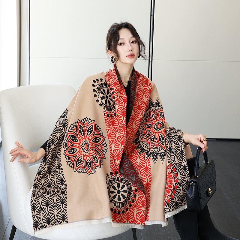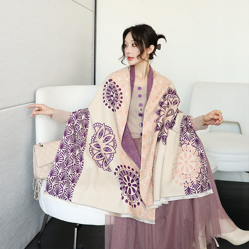 스카프 여자 겨울 올매치 귀여운 양면 긴 모조 캐시미어 봄과 가을 패션 두꺼운 에어컨 룸 대형 목도리 듀얼 사용