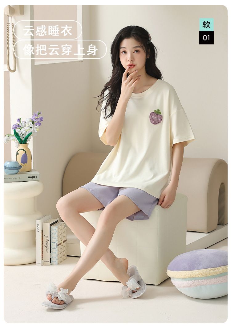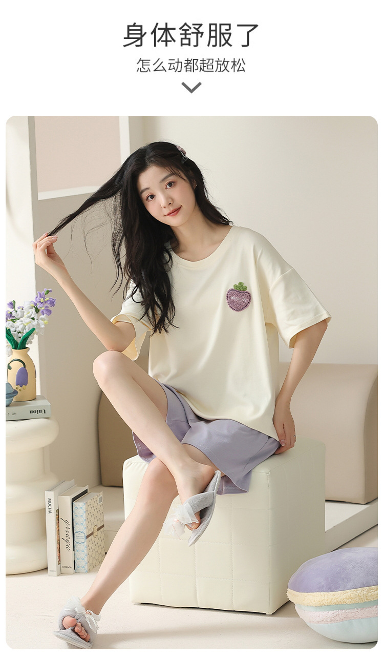여분의 플러스 사이즈 잠옷 여성 여름 순면 반팔 바지 풀오버 MM 학생의 순수면 인터넷 기념 홈 의류스토어 가기