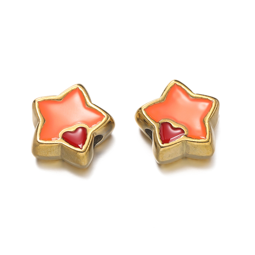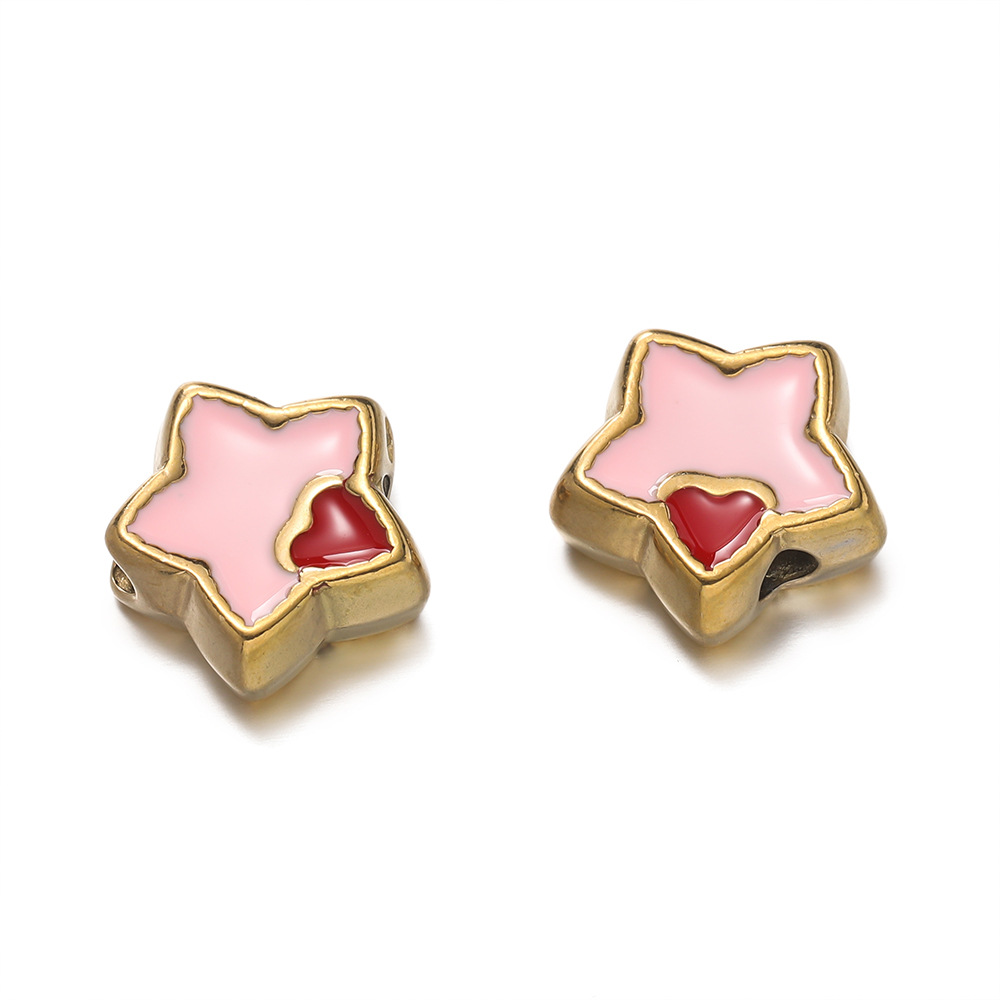 스테인레스 스틸로 골드 스페이서 비드 컬러 오일 드롭 클로 5 점 스타 펜던트 DIY 구슬 소재 쥬얼리 액세서리