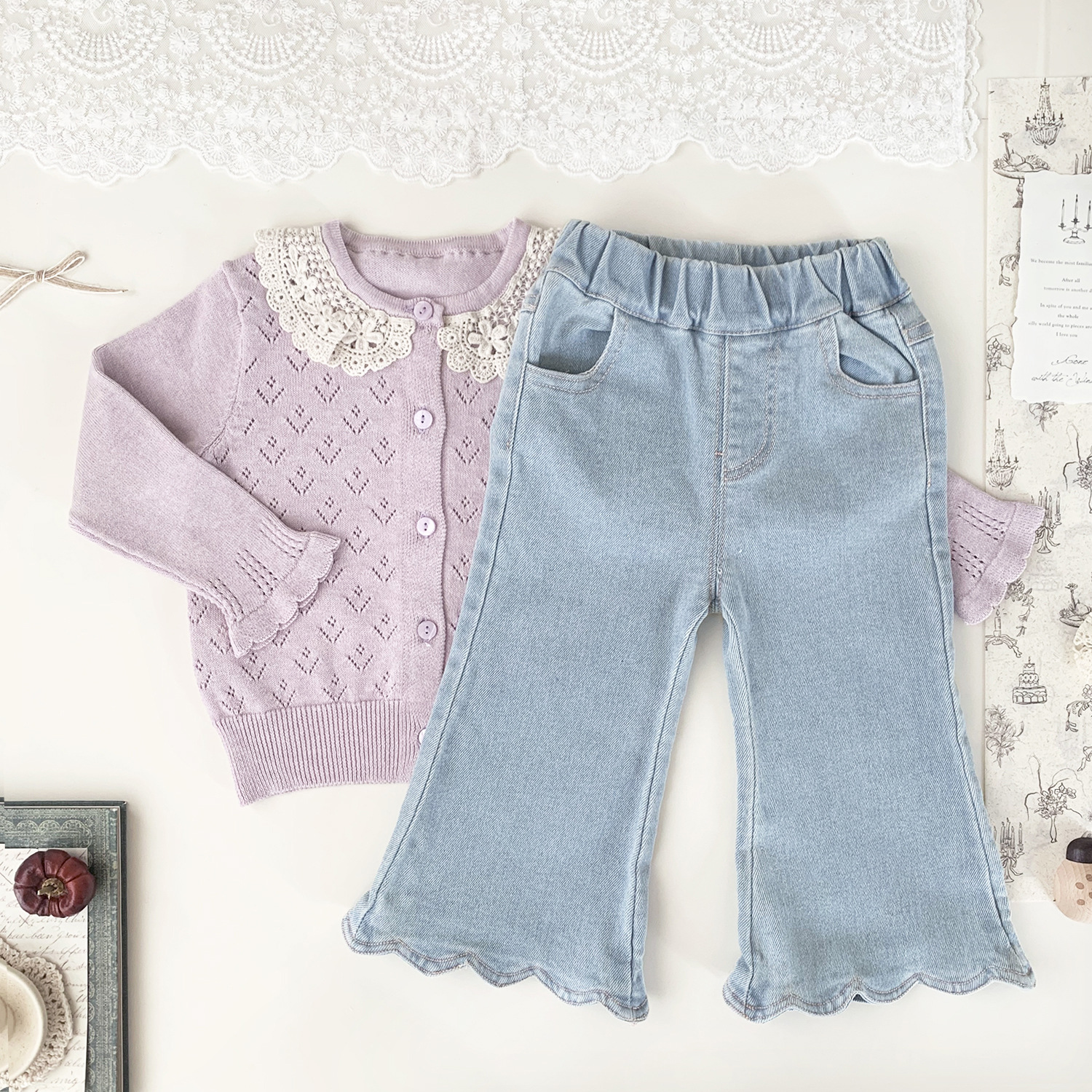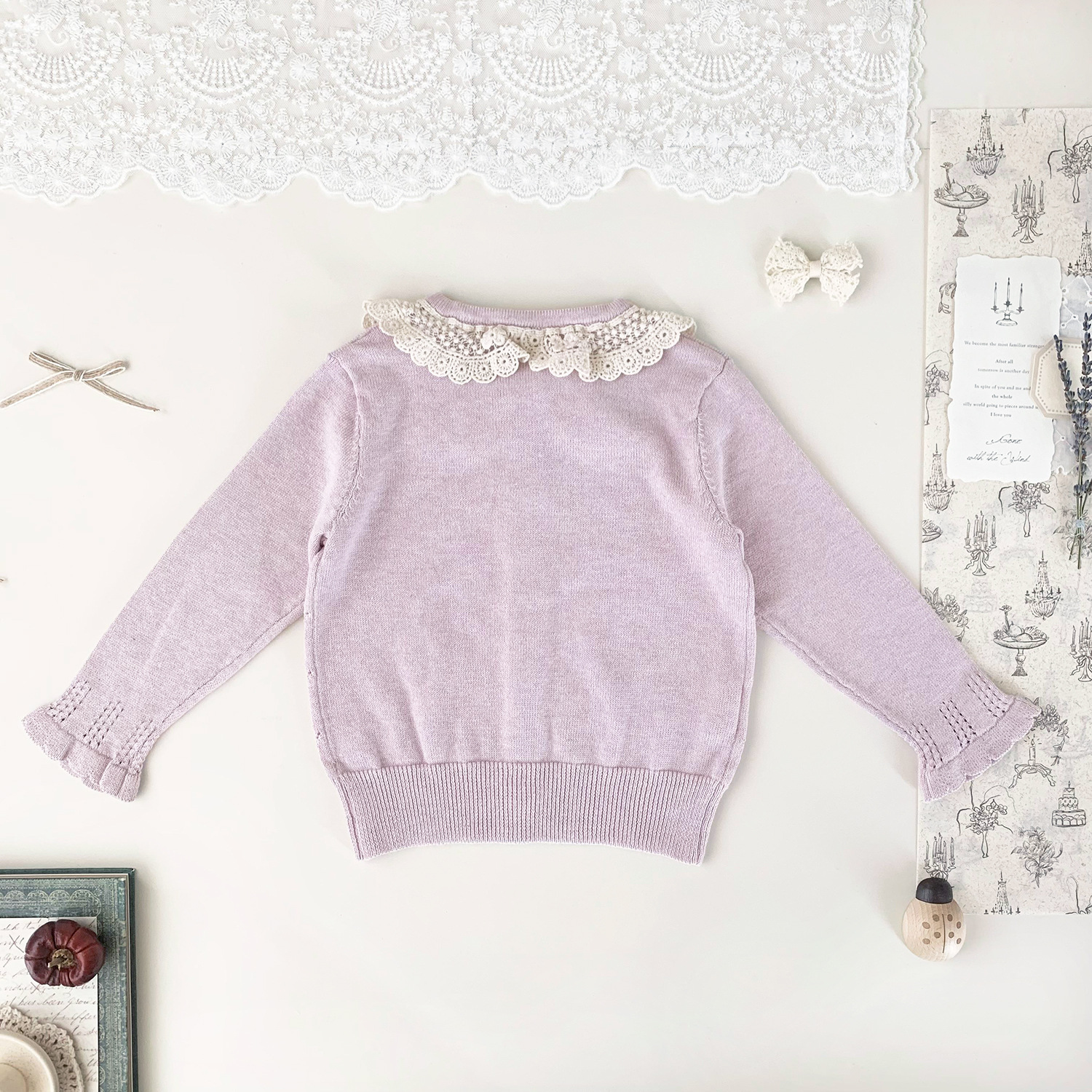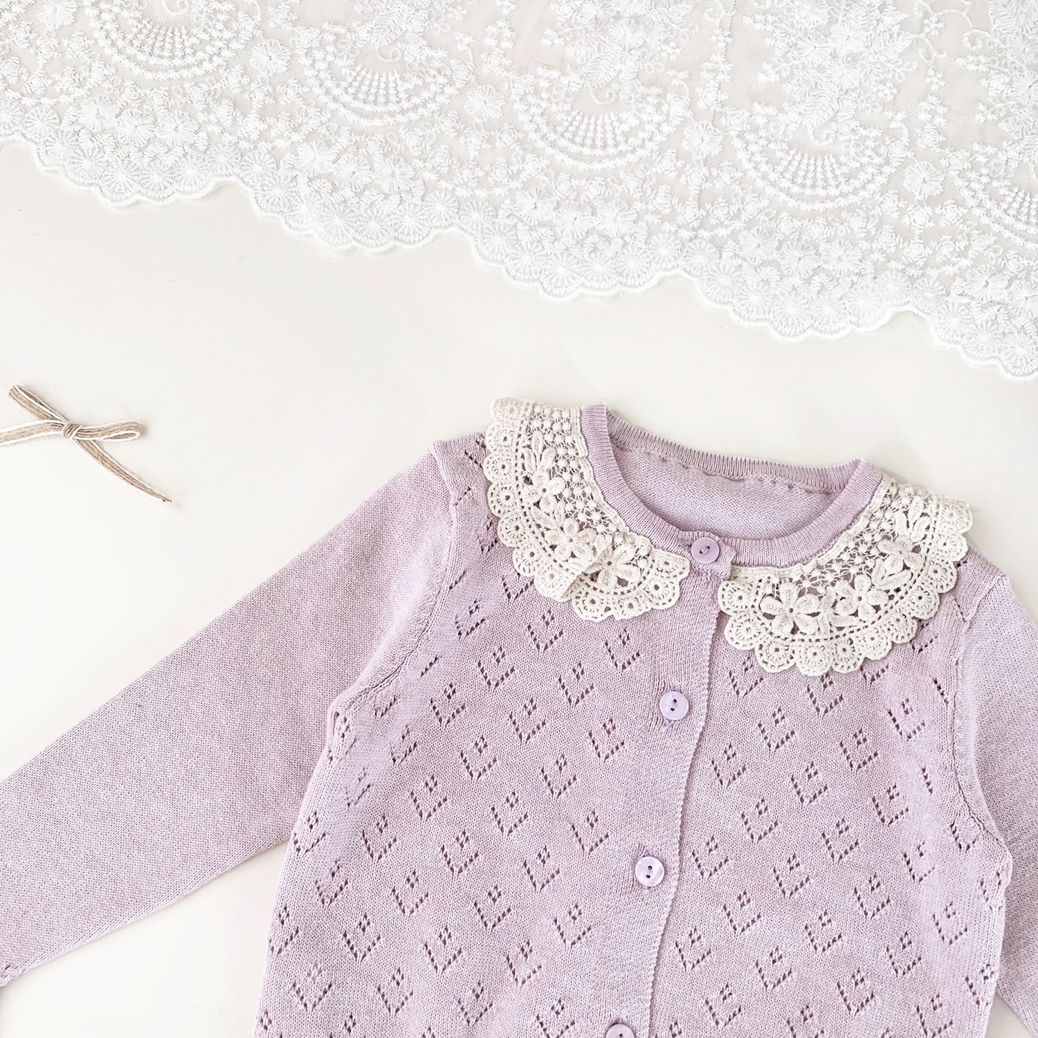 Ctuemily Girls Spring Cross-border Ins 수 놓은 칼라 카디건 여성용 보물 뿔 소매 Hollow Lar 니트 코트