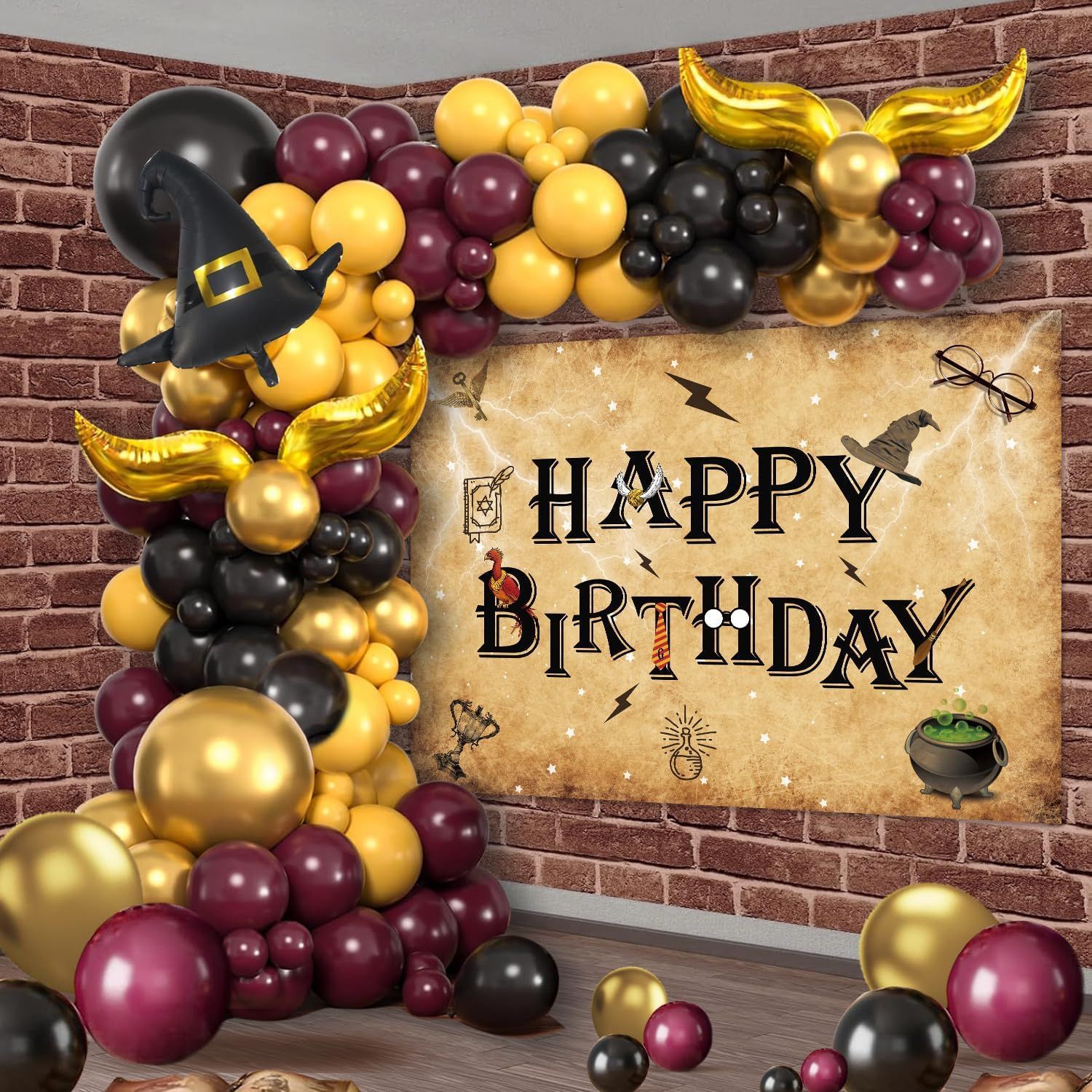아마존 마법사 모자 풍선 키트 버건디 골드 풍선 할로윈 테마 장소 장식
