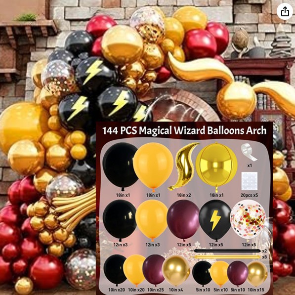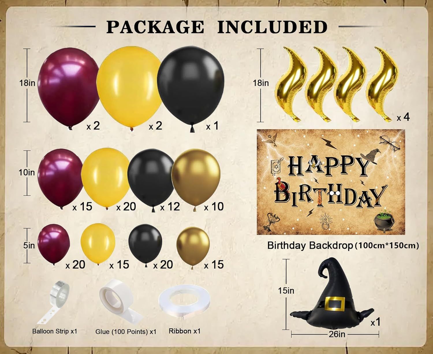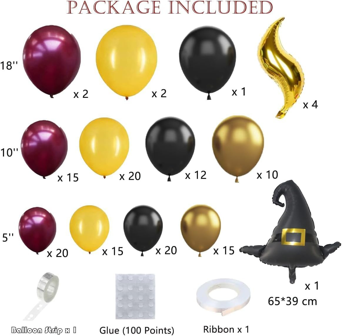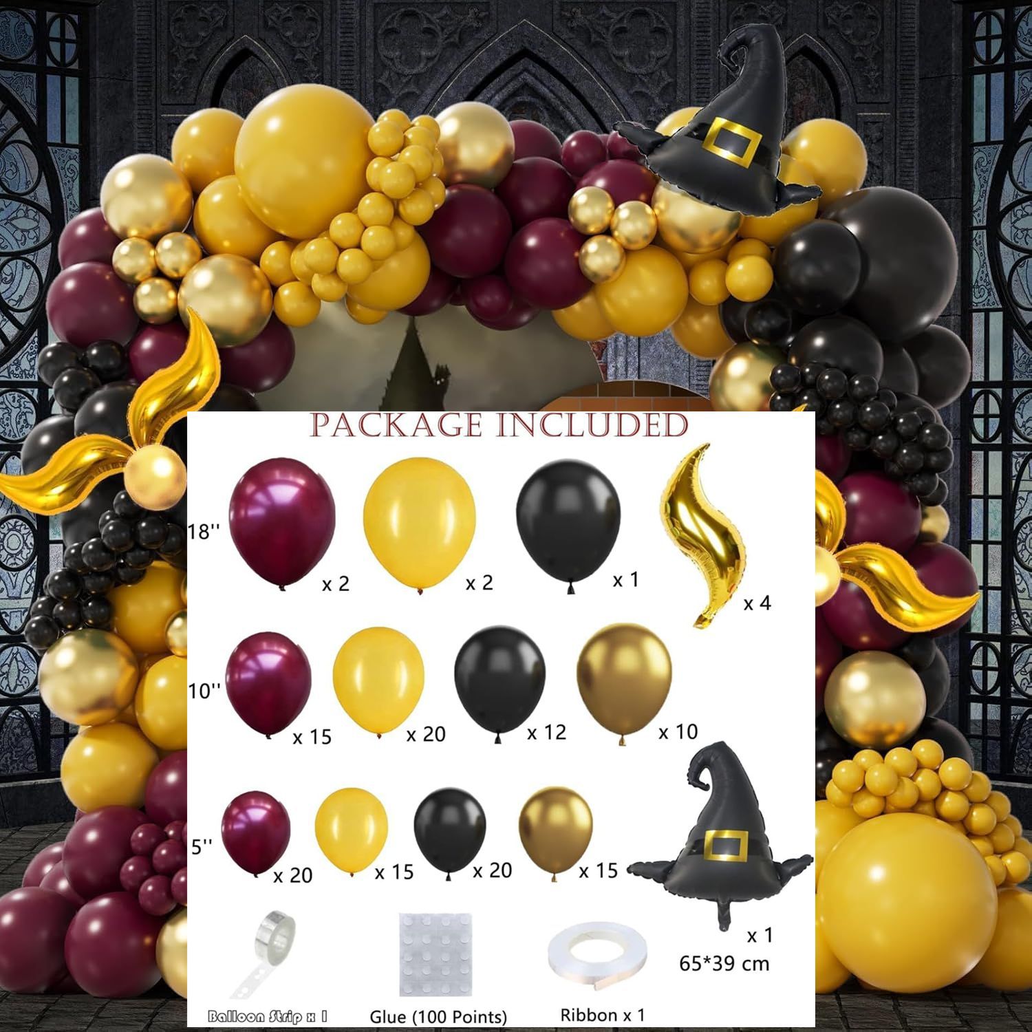 产品名称:亚马逊魔法巫师帽子气球套件 酒红色金色气球万圣节主题场地布置