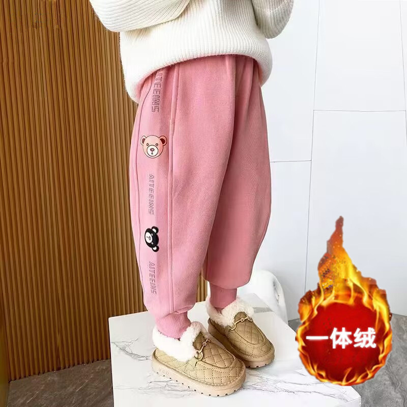 소녀 바지 봄과 가을 외부 착용 어린이 2023 새로운 어린이 겨울 기모 어린이 스포츠 바지 발 바지
