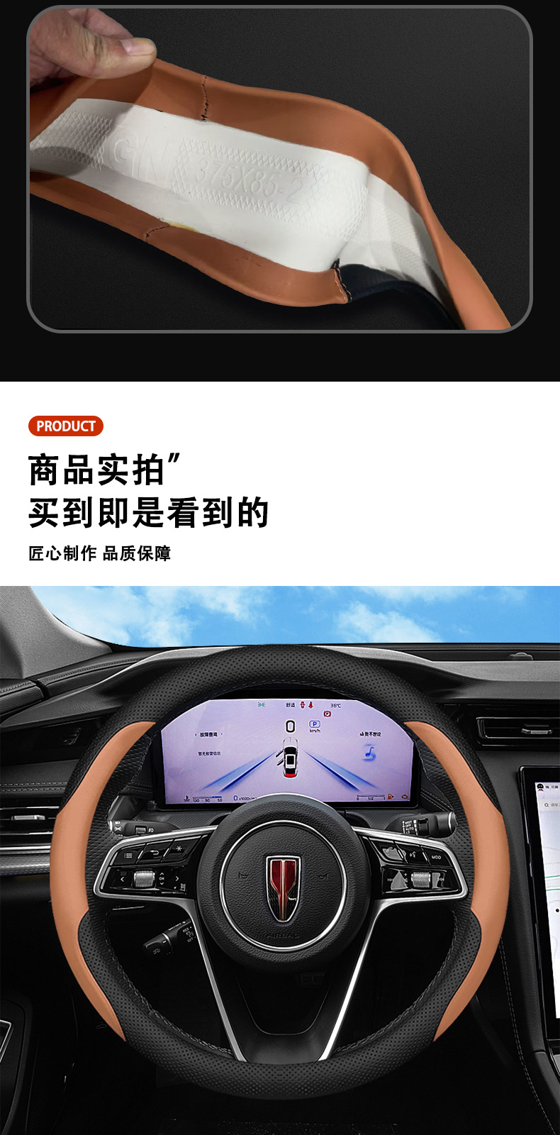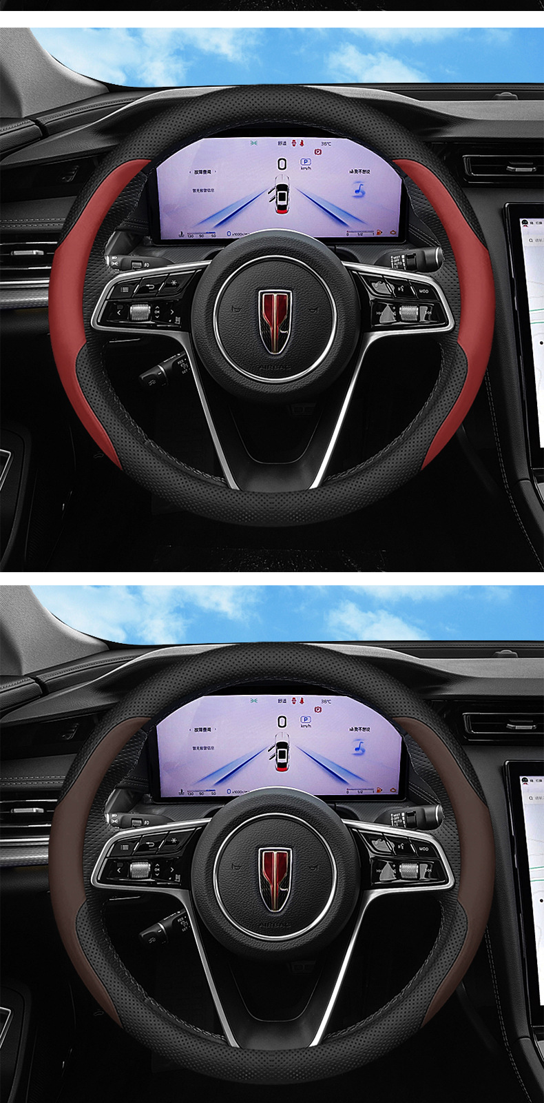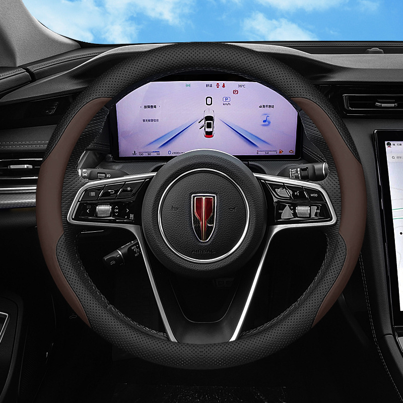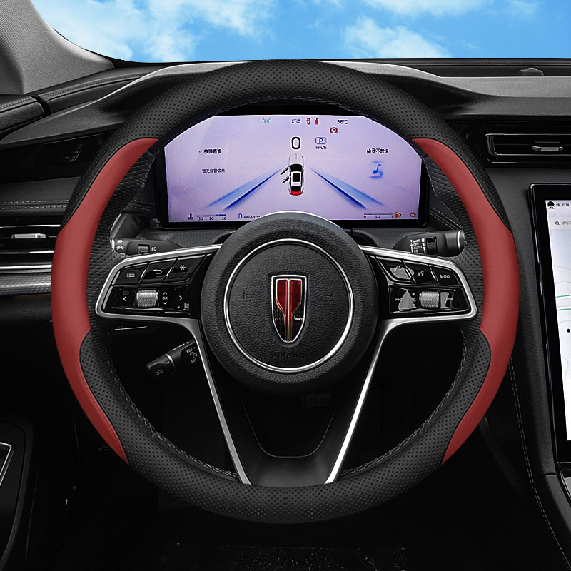 새로운 붉은 깃발 HS5 HS7 스티어링 휠 커버 2025 H5 EMQ5 H9 H6 HS3 초박형 가죽 핸들 커버에 적합스토어 가기
