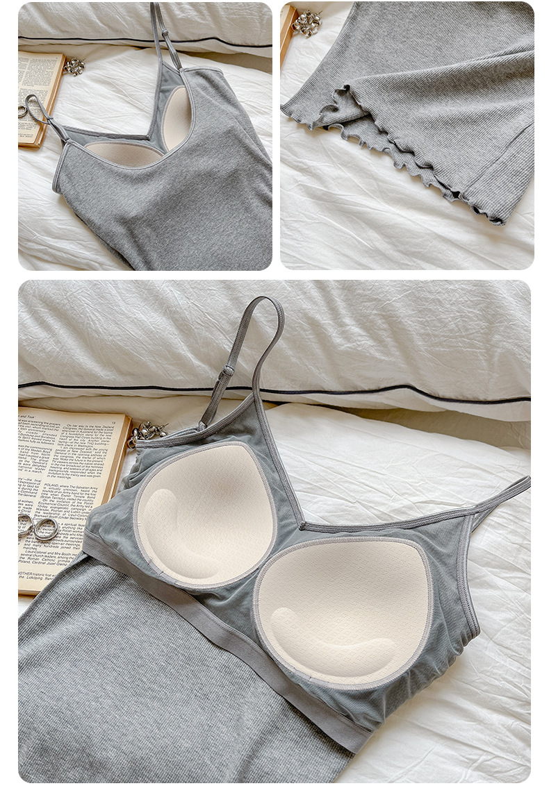 봄여름용 브이넥 러플 장식 패드 내장 탱크탑 여성용 아우터웨어 고탄력 보조가슴수축 여성용 이너웨어 아름다운 등라인스토어 가기
