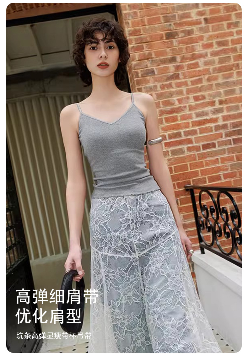 봄여름용 브이넥 러플 장식 패드 내장 탱크탑 여성용 아우터웨어 고탄력 보조가슴수축 여성용 이너웨어 아름다운 등라인